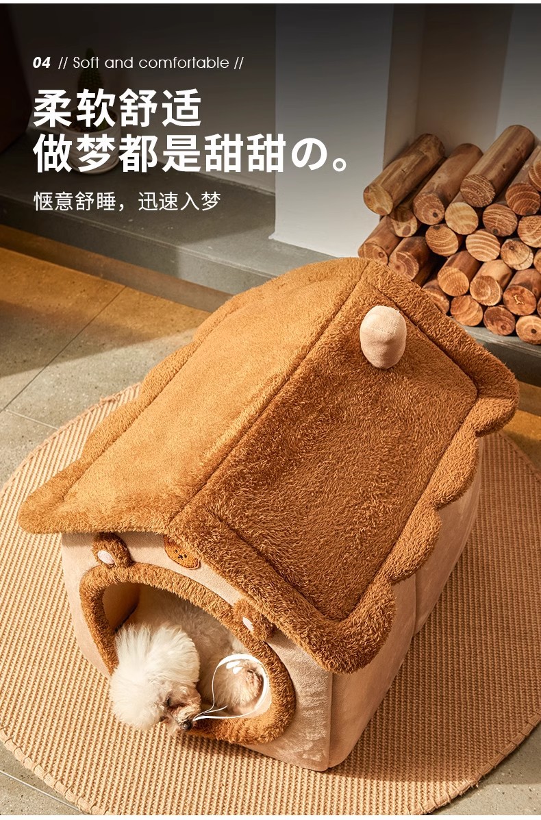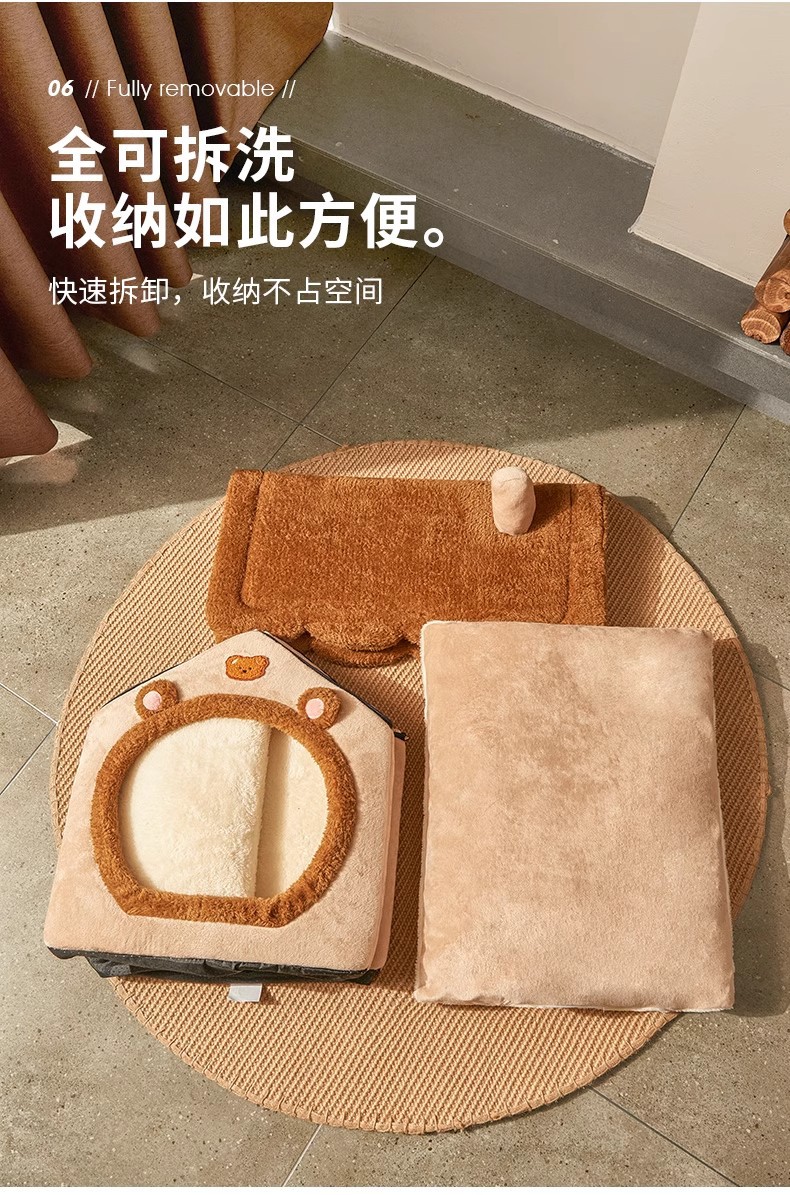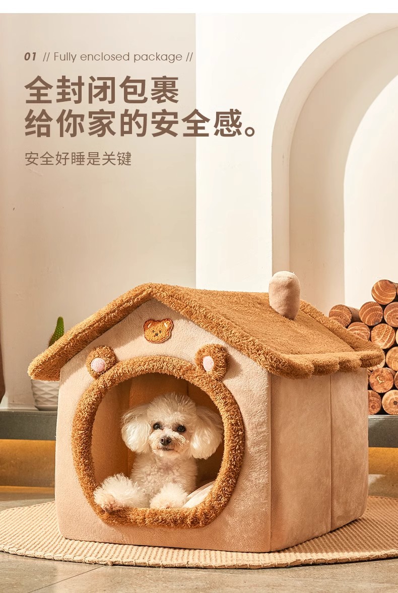 사계절용 개집, 밀폐형 고양이집, 빌라, 중소형 탈부착 및 세탁 가능, 겨울 따뜻한 고양이 침대 수면매트 도매스토어 가기
