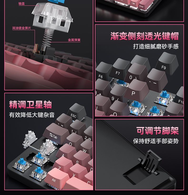 • 뷰소닉 KU520pro 메탈 패널 메카니컬 [다크 나이트 핑크 그라데이션 측면 각인]