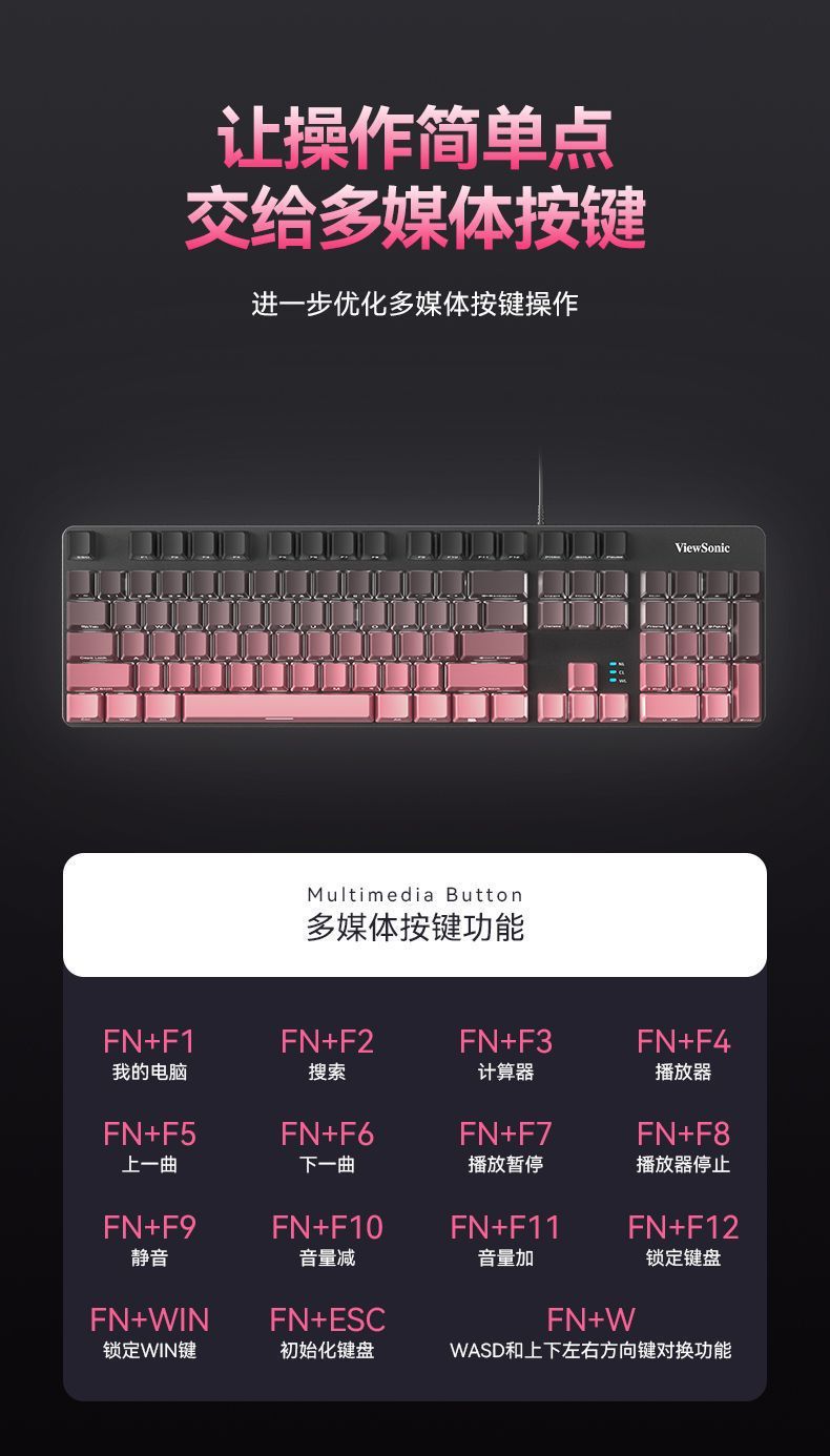 • ViewSonic KU520 기계식 키보드 [플라스틱 패널 블랙 표준 버전]