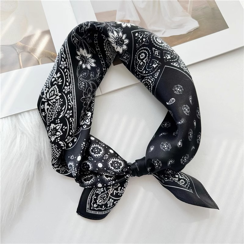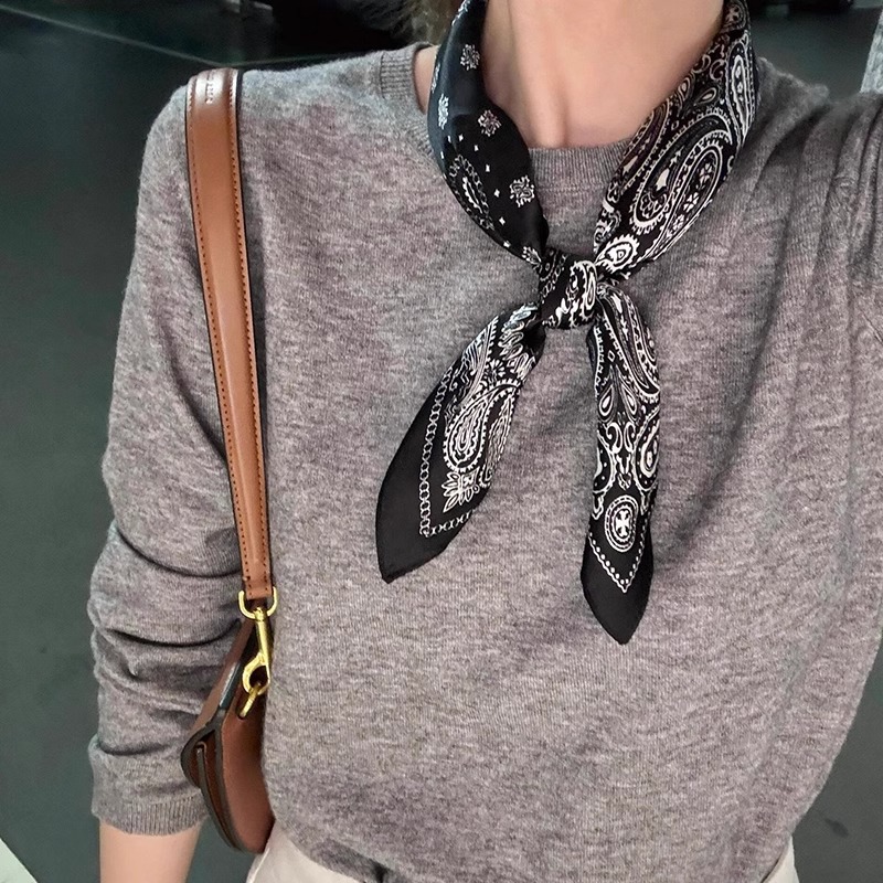 캐슈 꽃 작은 광장 실크 스카프 여성의 2025 새로운 스타일 목 스트랩 셔츠 장식이있는 하이 엔드 목 액세서리스토어 가기
