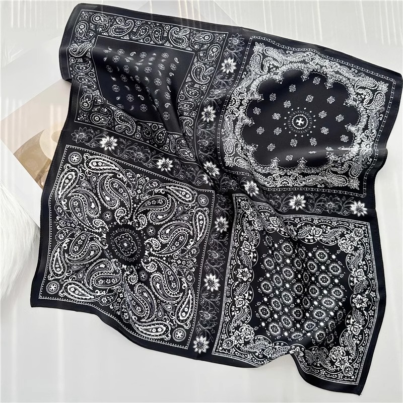 캐슈 꽃 작은 광장 실크 스카프 여성의 2025 새로운 스타일 목 스트랩 셔츠 장식이있는 하이 엔드 목 액세서리