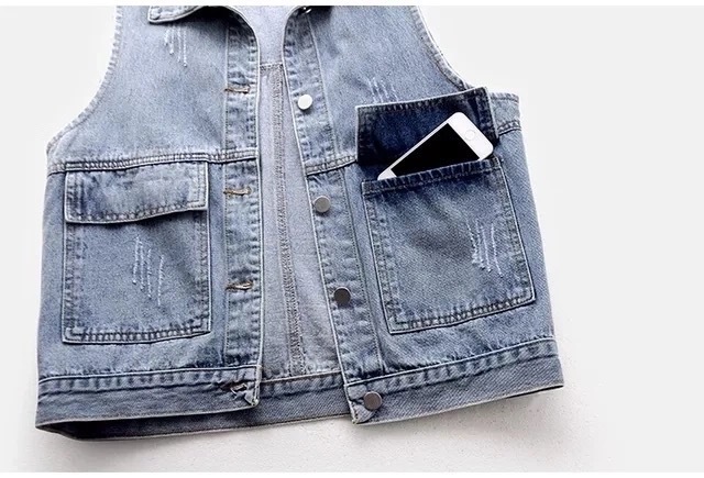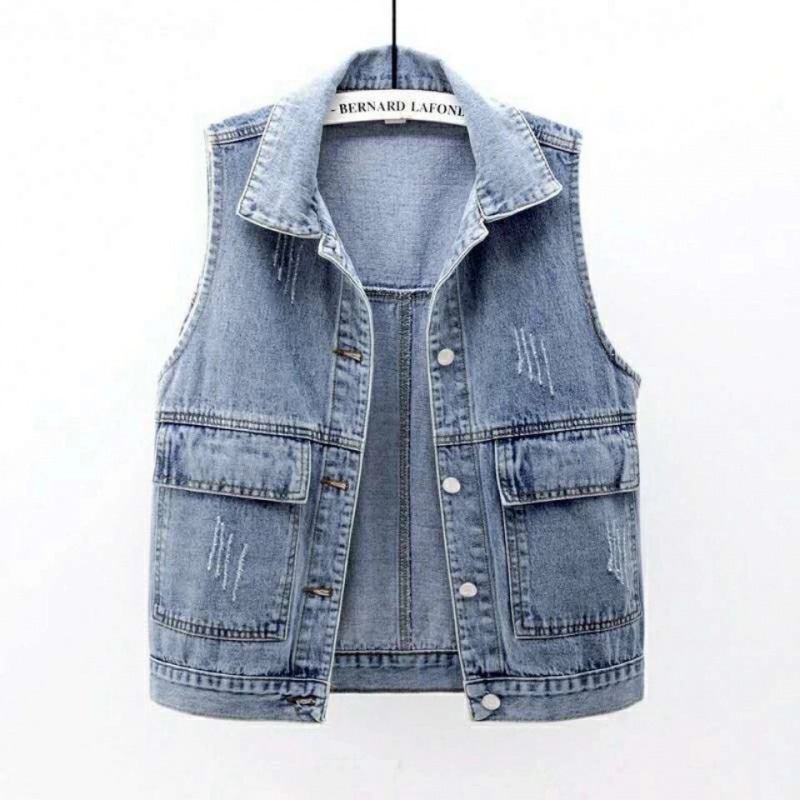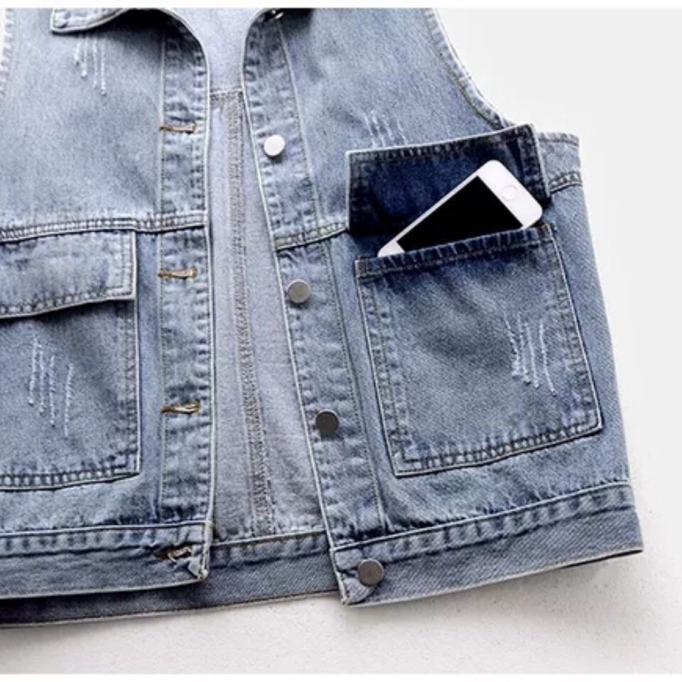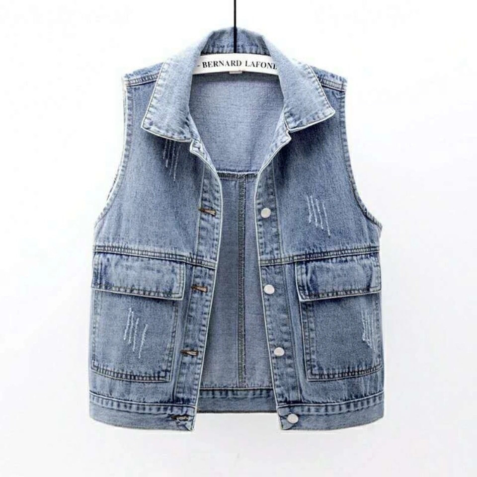 2025 봄과 가을 새로운 데님 조끼 여자 쇼트 올 매치 웨스턴 스타일 민소매 조끼 웨이스트 코트 탑스토어 가기