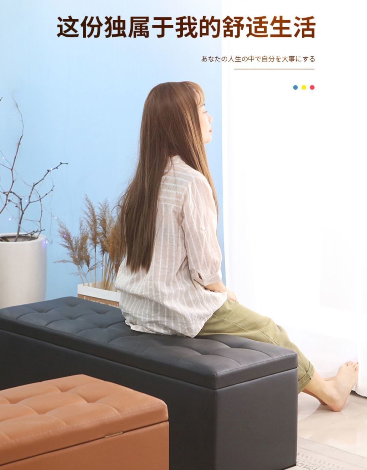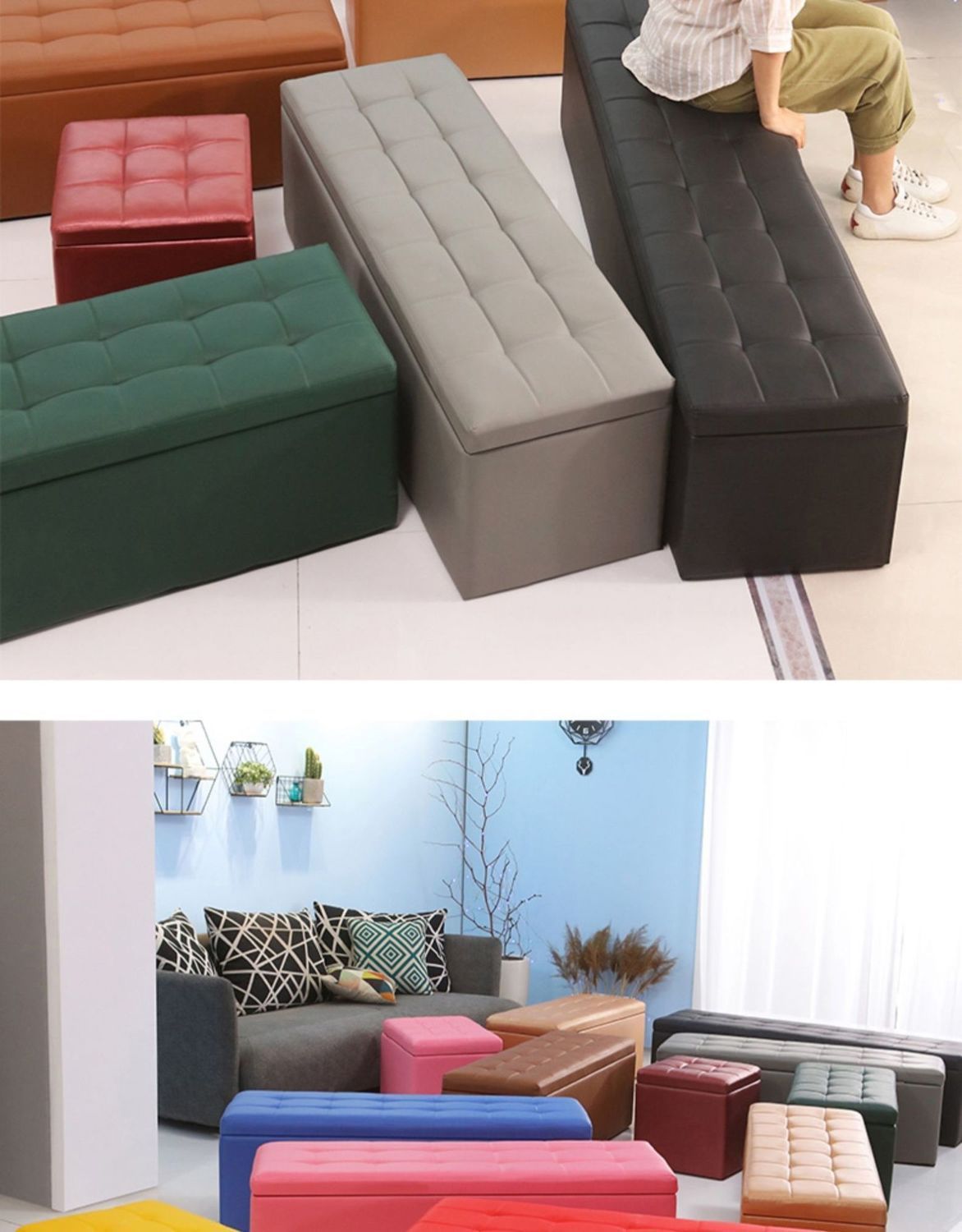 긴 소파 의자 보관 의자 다기능 가정용 가죽 Dun 의류 매장 피팅 룸은 다인용 신발 변경 스톨이 될 수 있습니다.스토어 가기