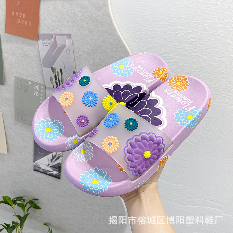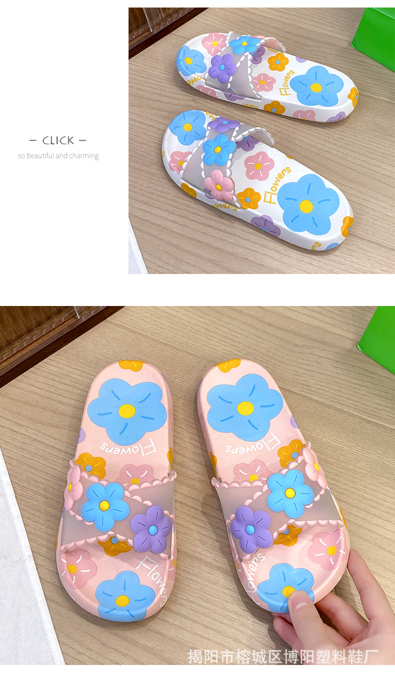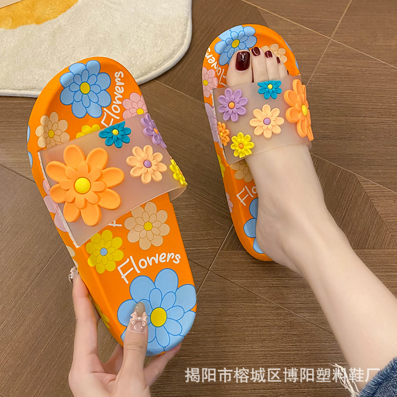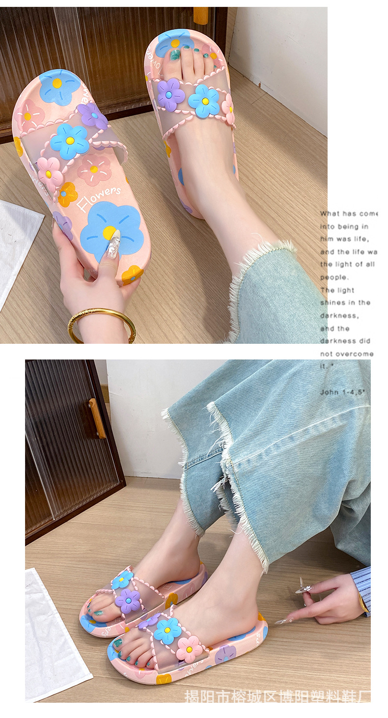 여름 인터넷 축하 인기있는 슬리퍼 여성의 귀여운 꽃 외부 부드러운 바닥 미끄럼 방지 홈 욕실 한 단어 드래그 여성 도매스토어 가기