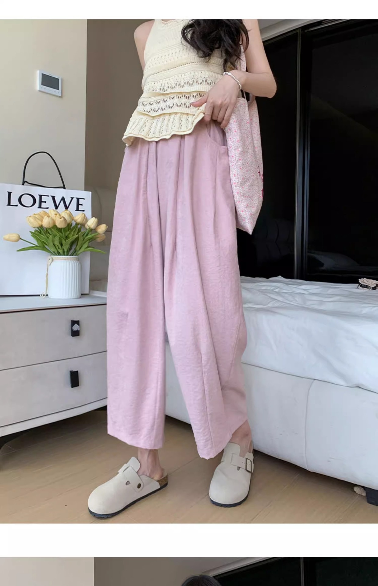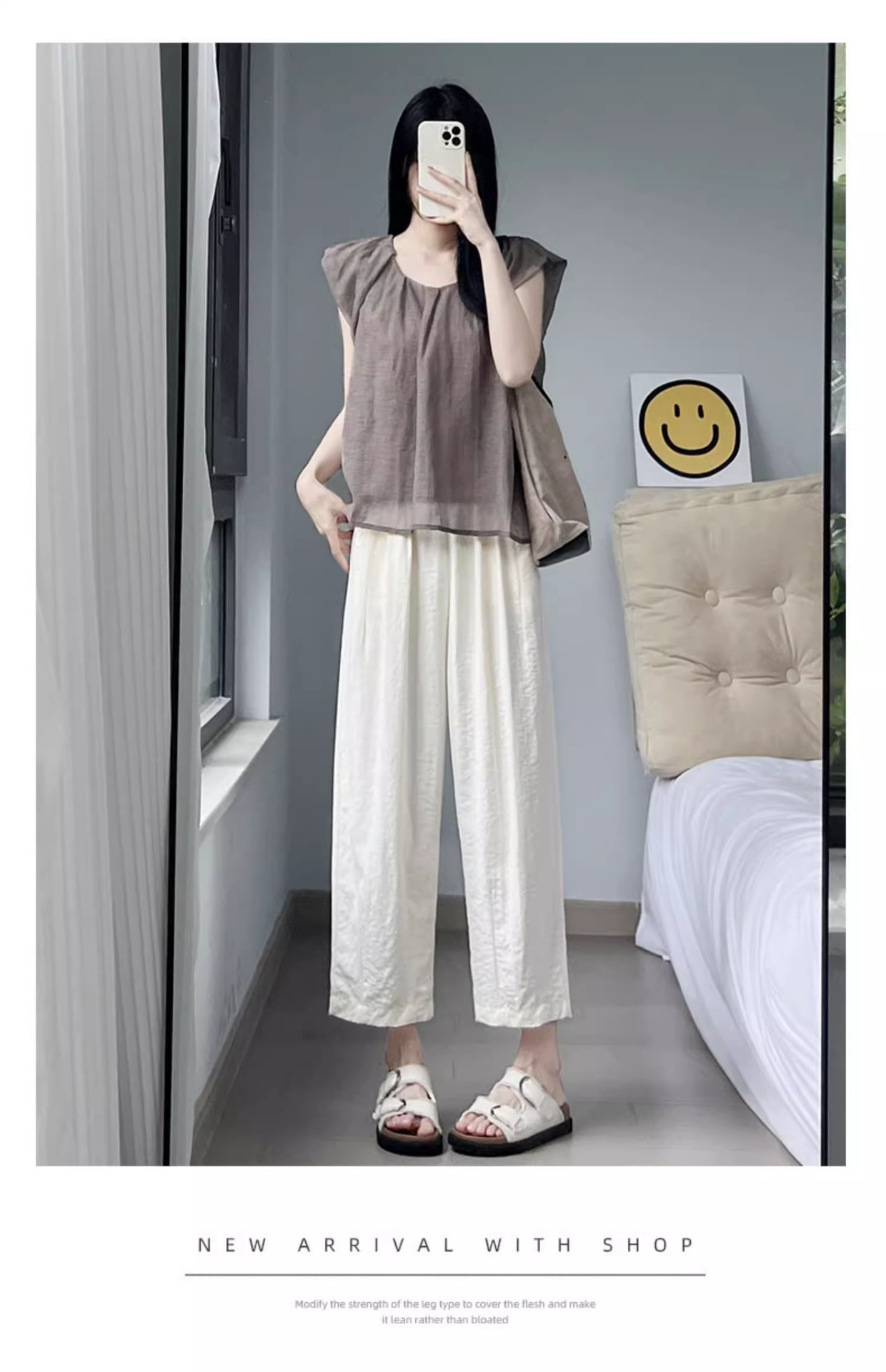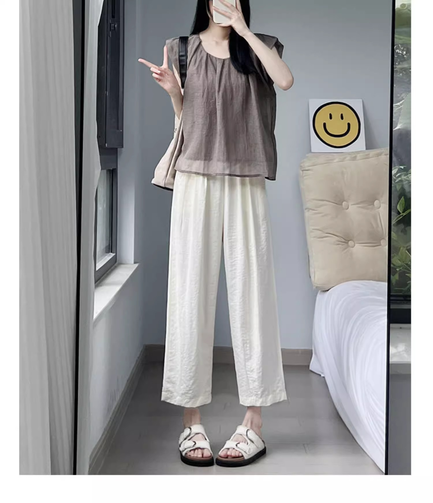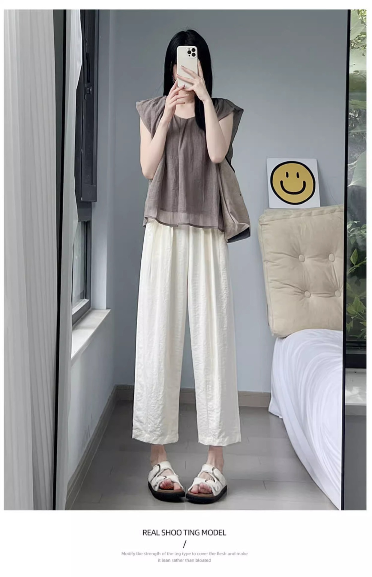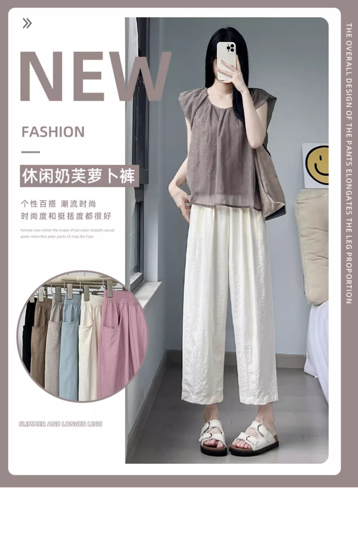 화이트 아이스 실크 당근 바지 여성 여름 얇은 2025 새로운 스타일 작은 스타일 두부 캐주얼 올 매치 우유 자른 바지스토어 가기