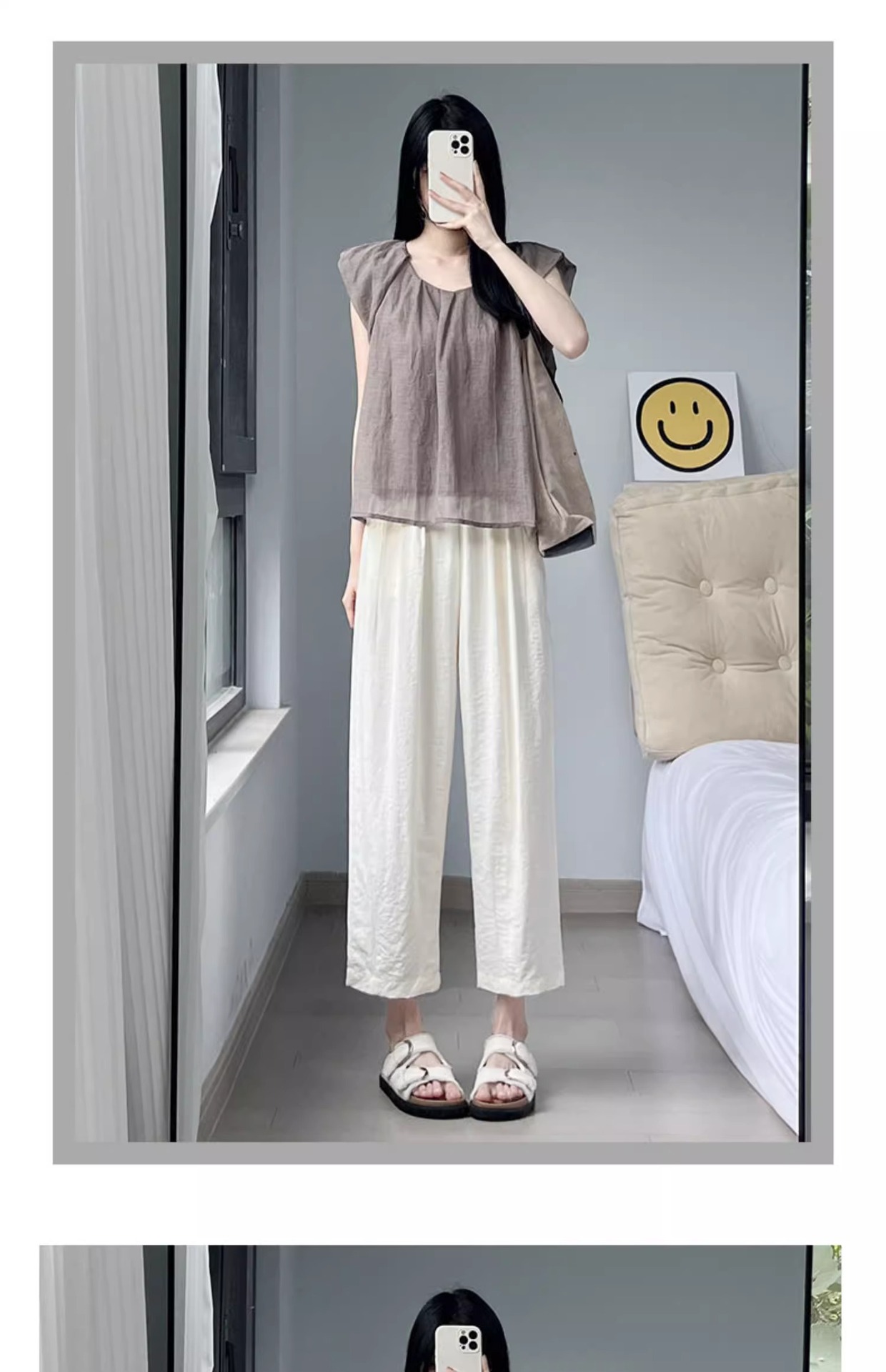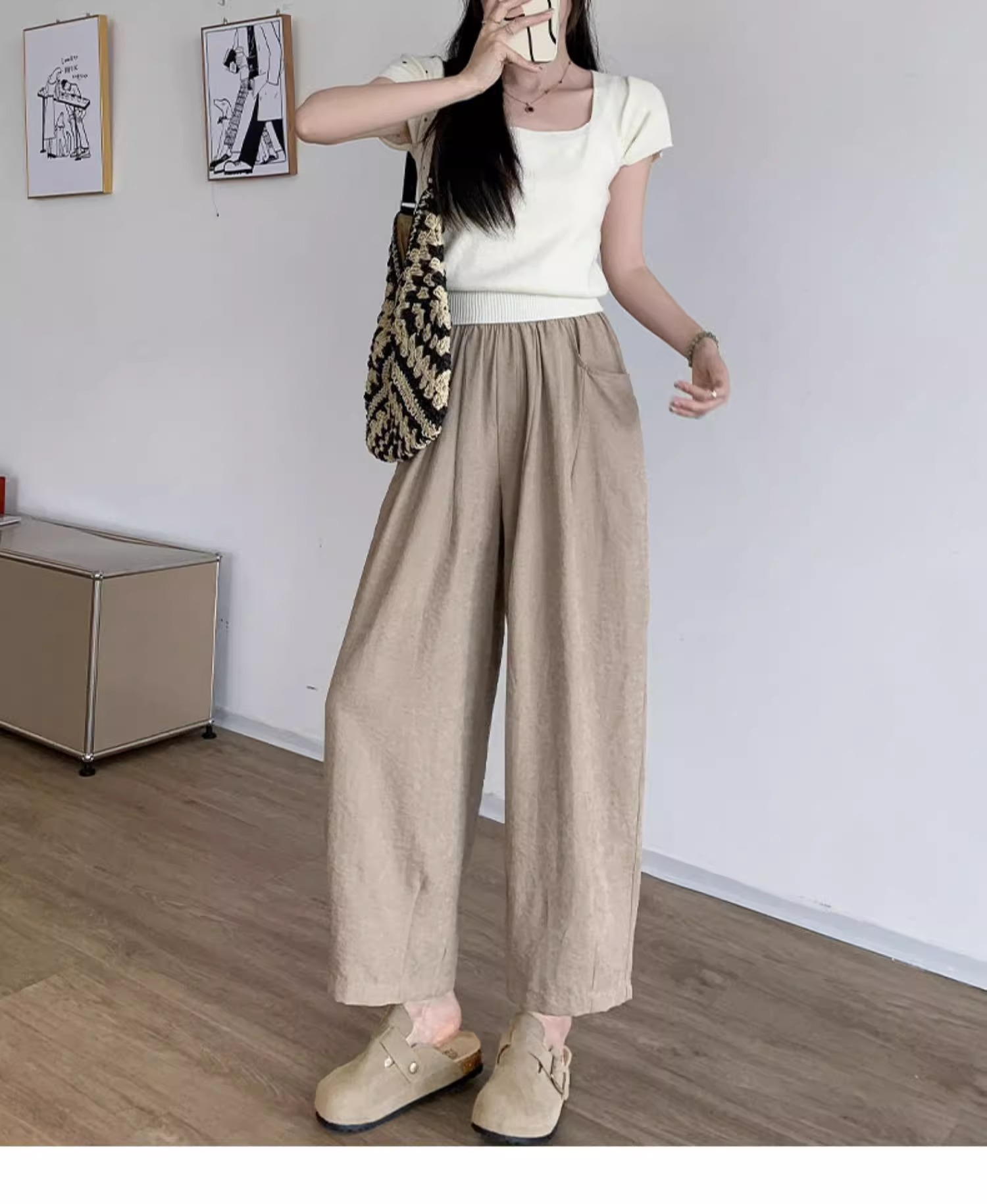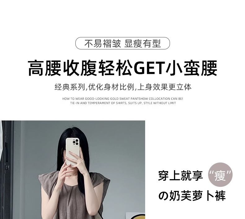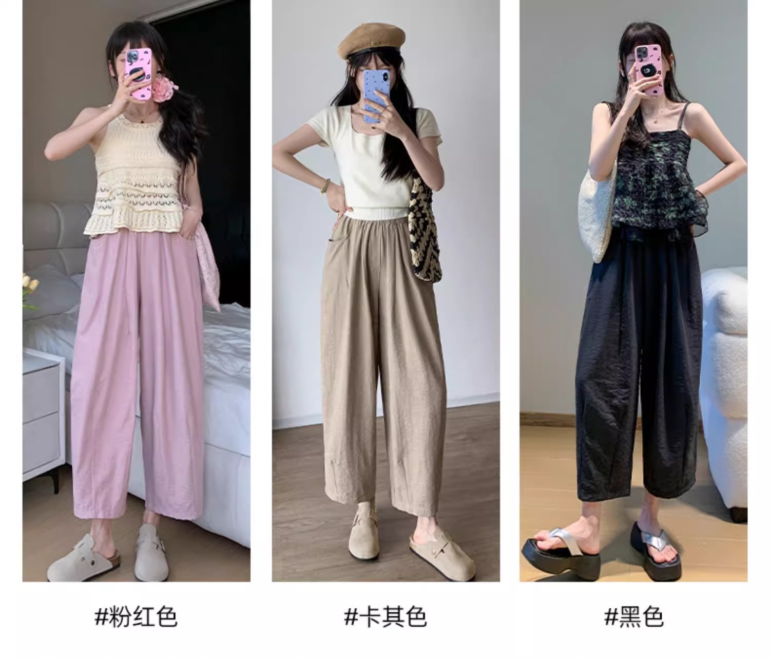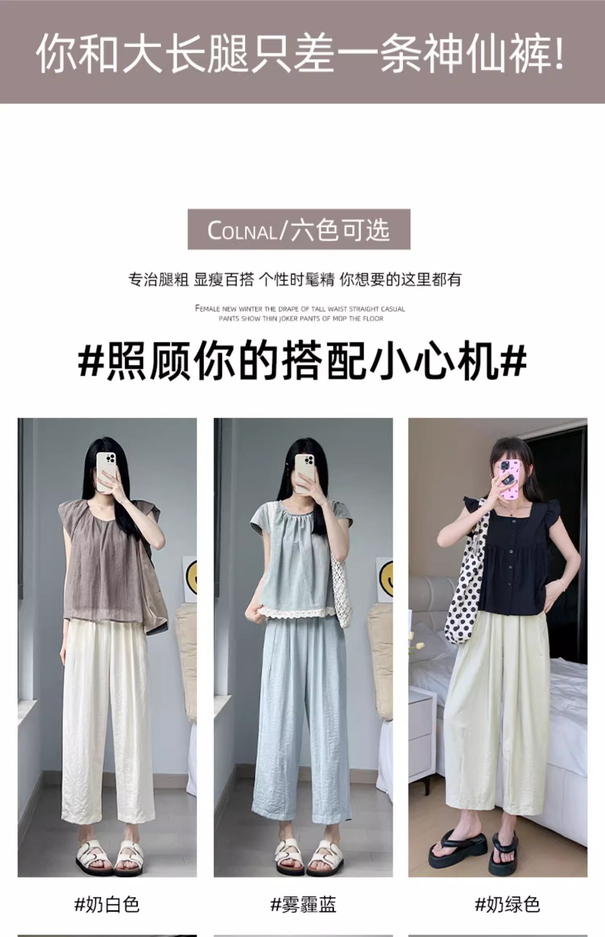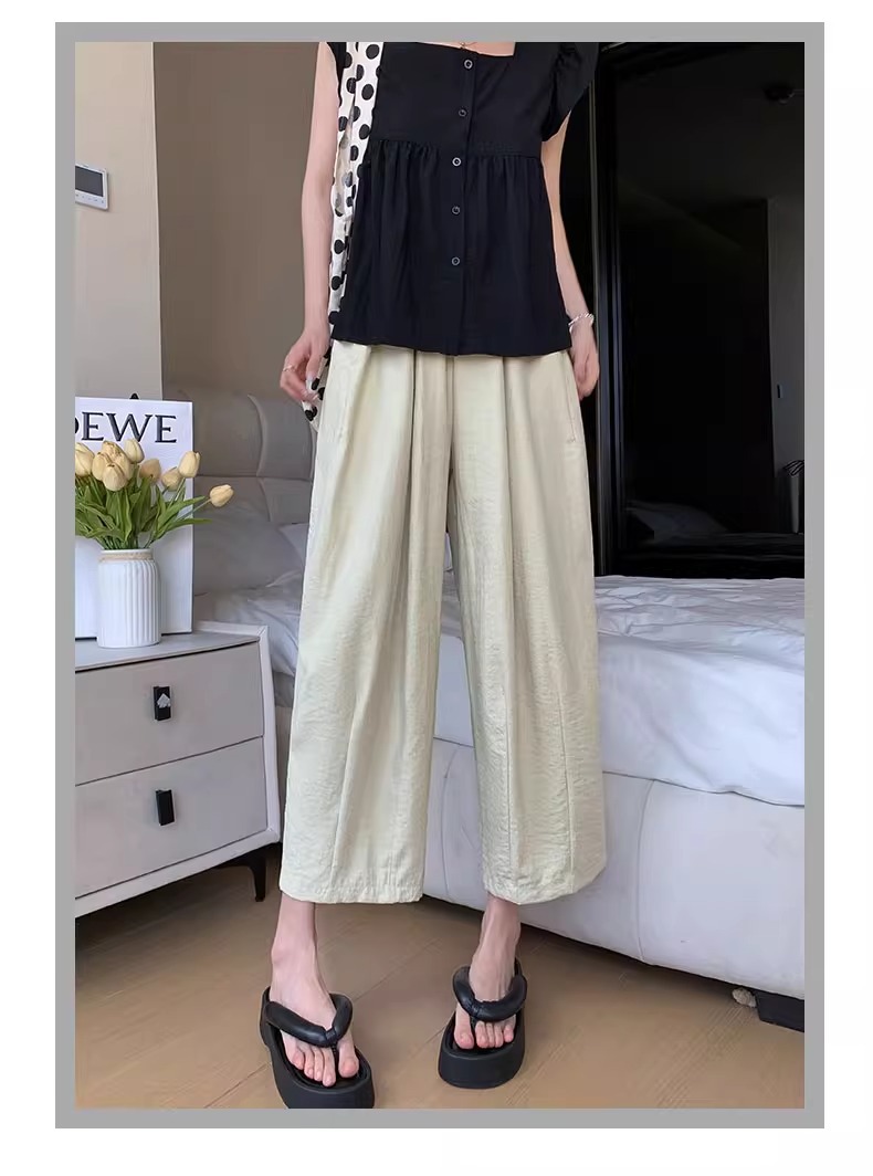 화이트 아이스 실크 당근 바지 여성 여름 얇은 2025 새로운 스타일 작은 스타일 두부 캐주얼 올 매치 우유 자른 바지스토어 가기