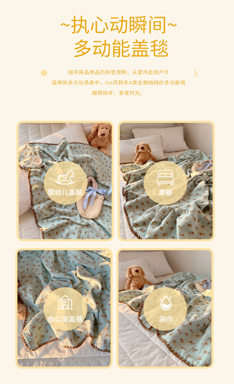 A급 유아용 순면 이중 거즈 담요, 낮잠용 소파 담요, 순면 사무실 담요, 에어컨 이불심스토어 가기