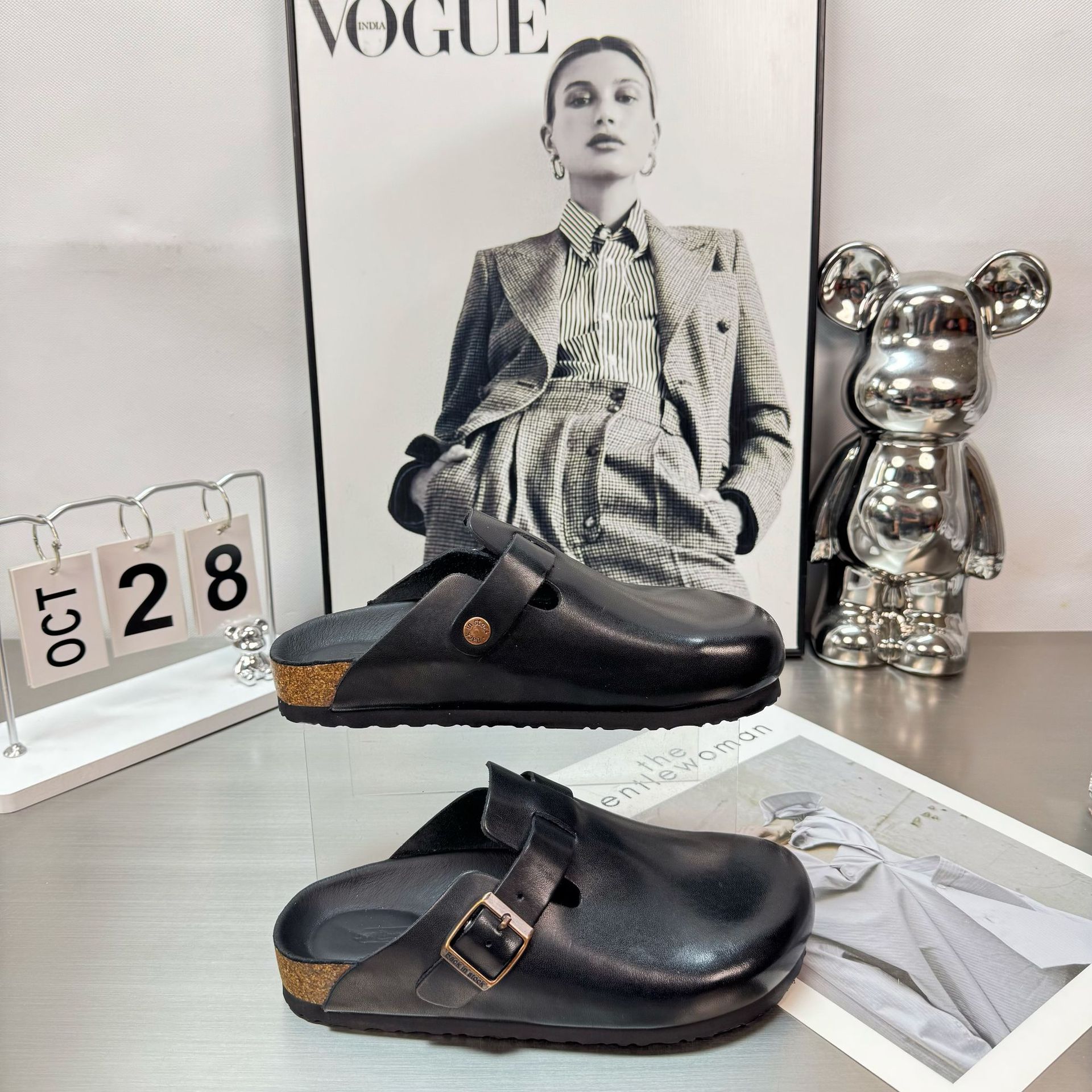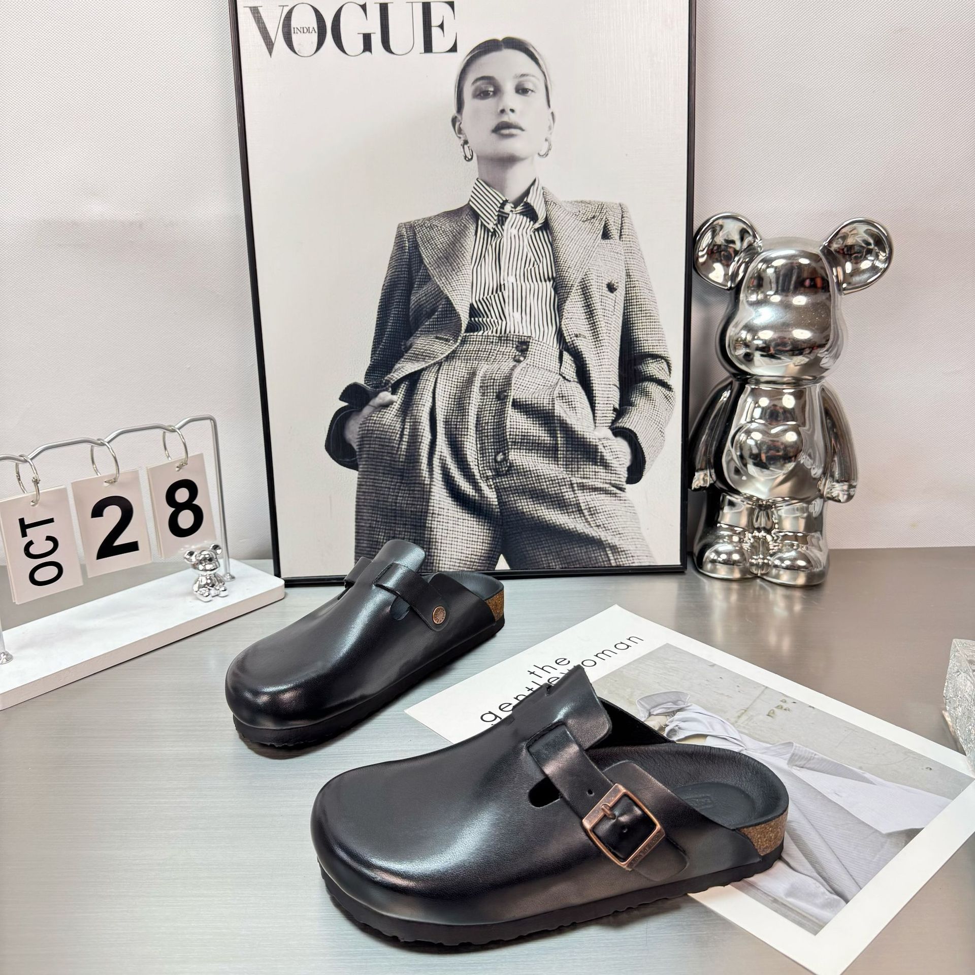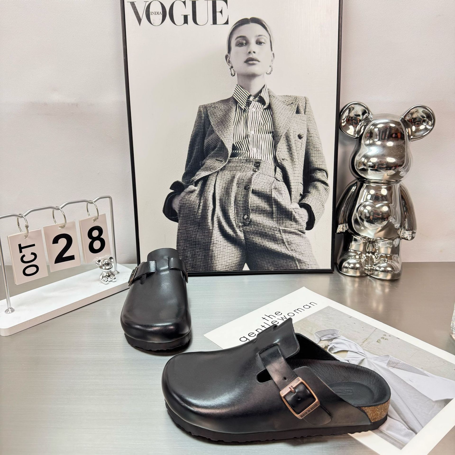 2025 봄 신상 여성용 소가죽 버켄스탁 신발, 복고풍 발가락 반슬리퍼, 캐주얼한 두꺼운 밑창 아우터, 천연 가죽 다용도 슬리퍼스토어 가기