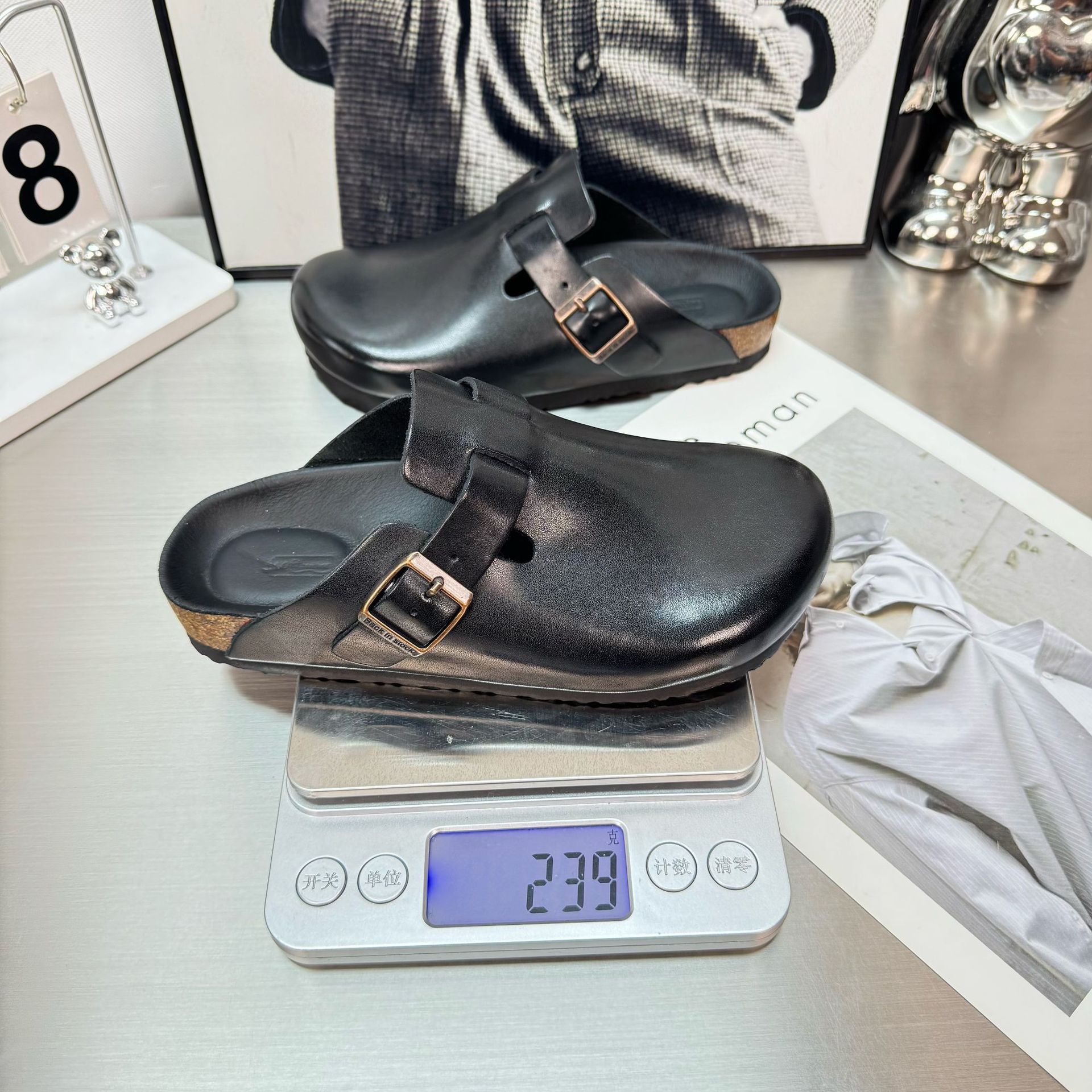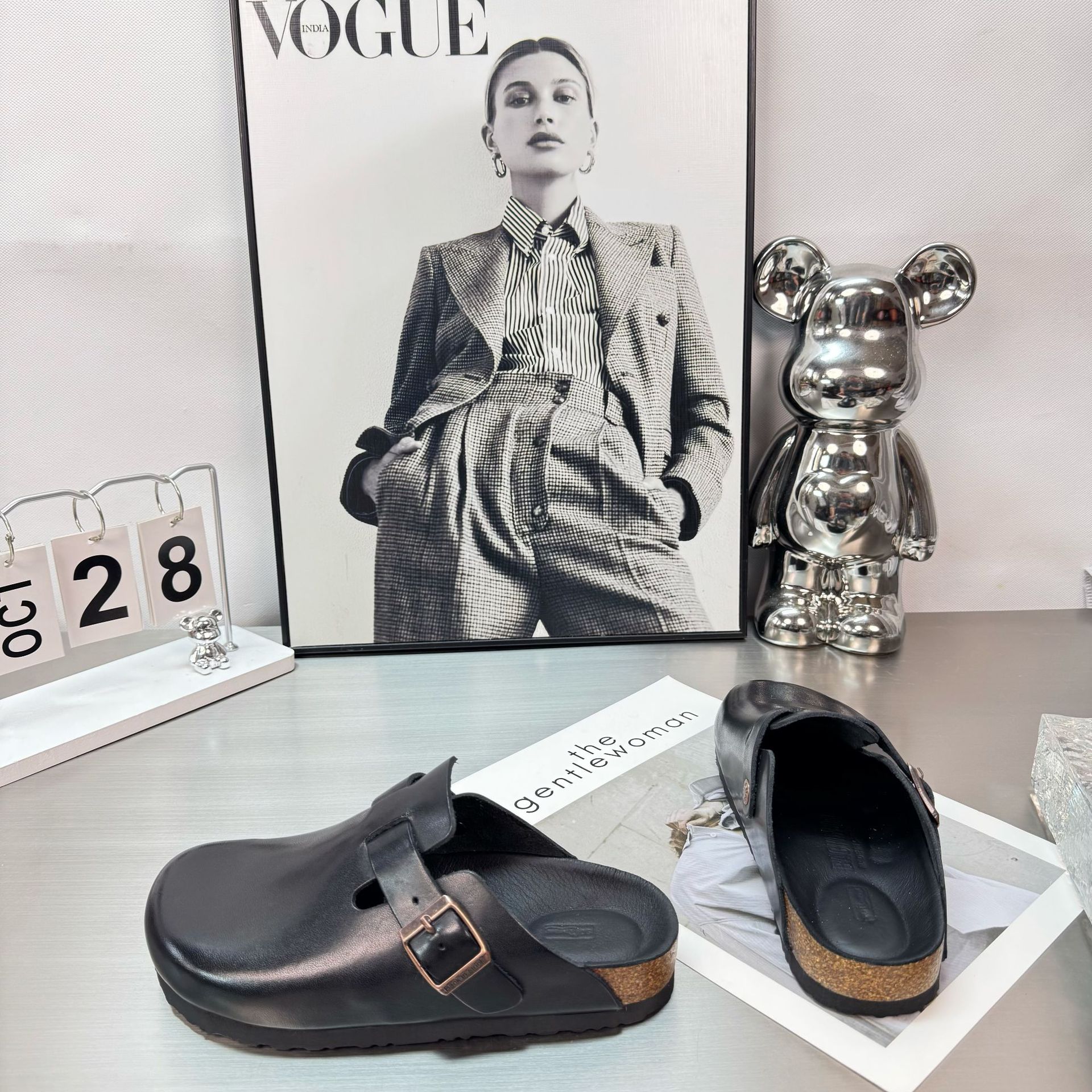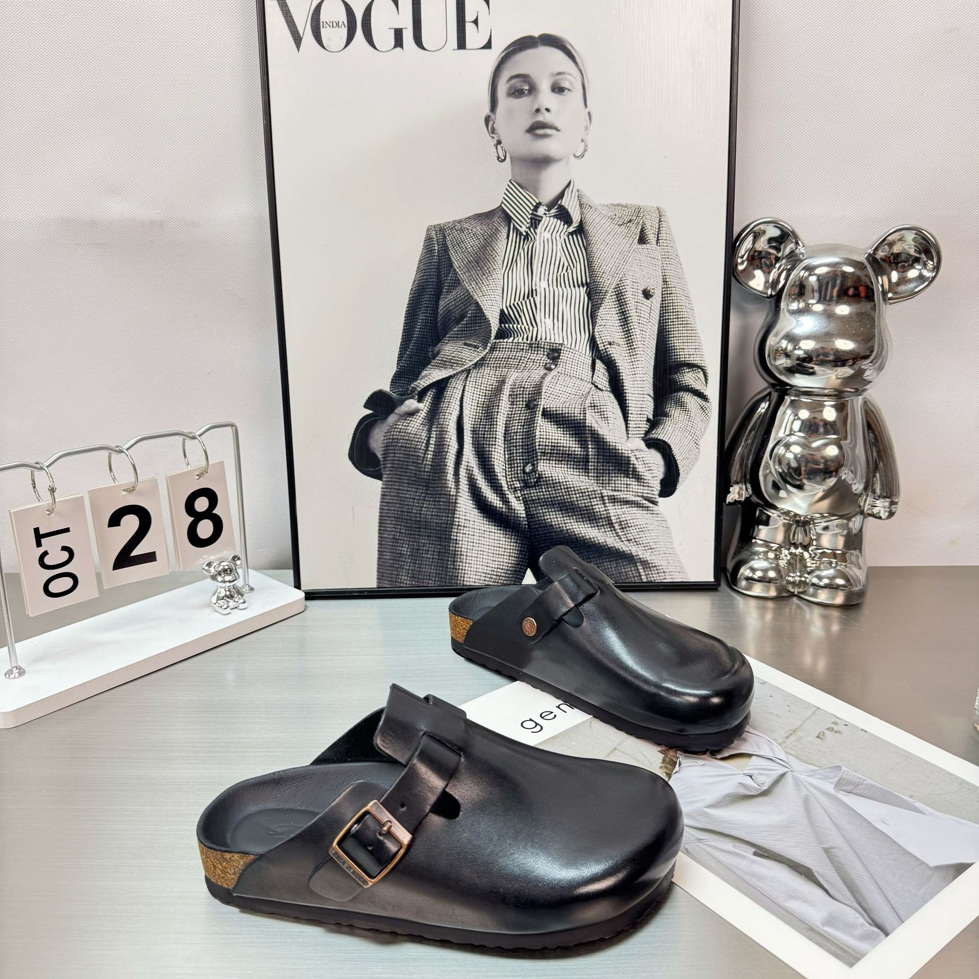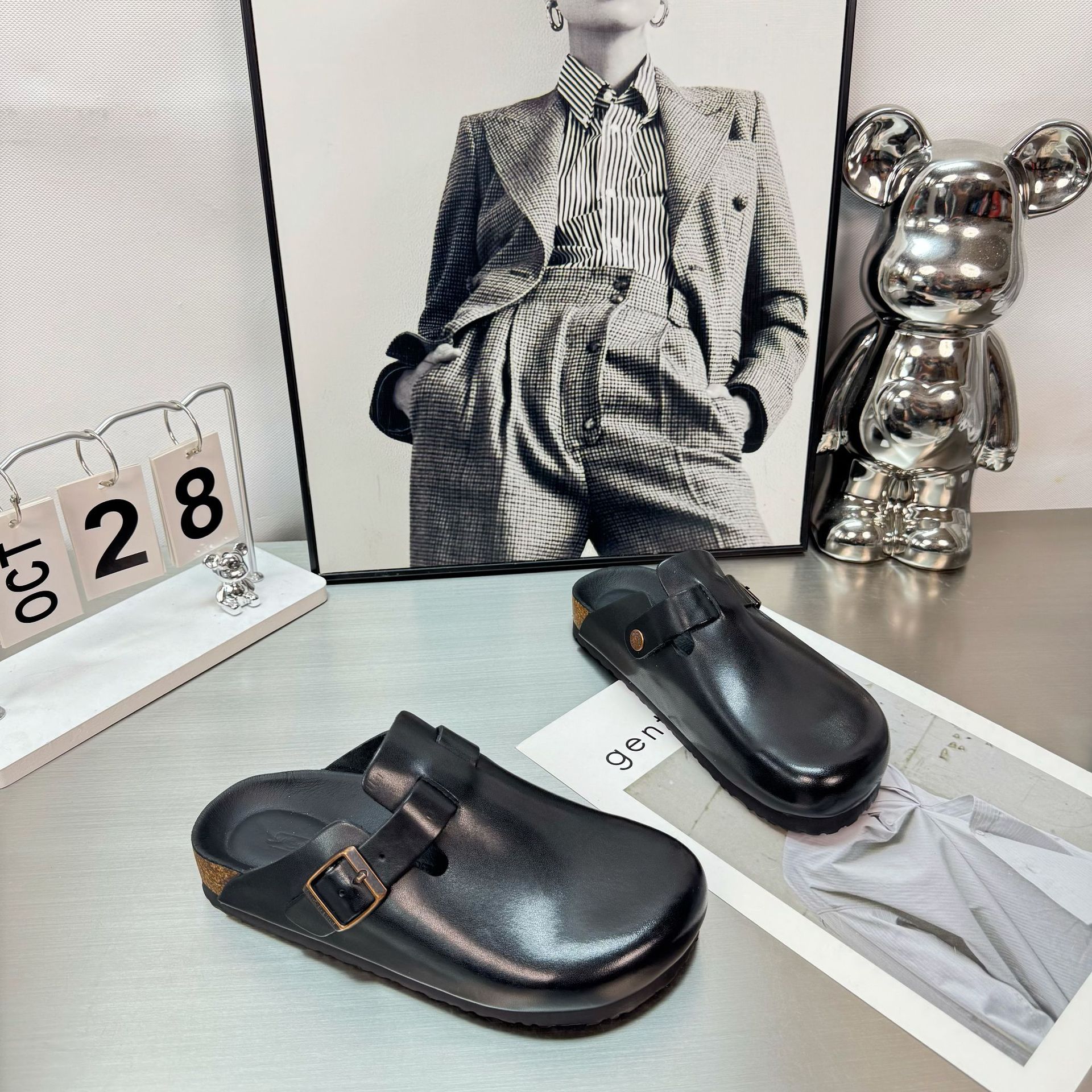 2025 봄 신상 여성용 소가죽 버켄스탁 신발, 복고풍 발가락 반슬리퍼, 캐주얼한 두꺼운 밑창 아우터, 천연 가죽 다용도 슬리퍼스토어 가기