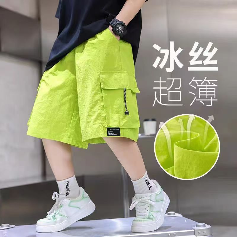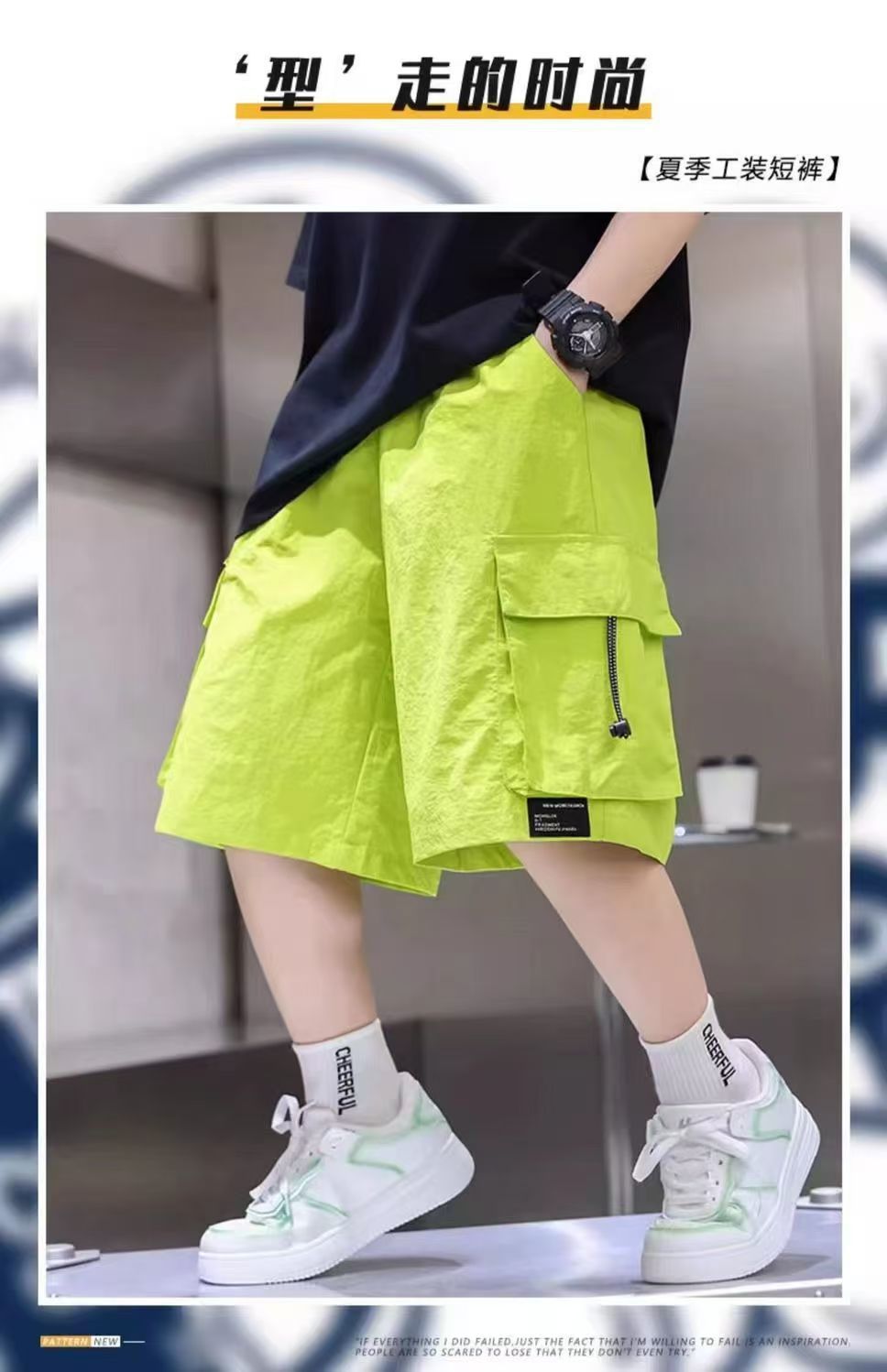 남아 여름 얇은 바지 아동용 속건성 중대형 어린이 반바지 캐주얼 남아 작업복 스포츠 형광색스토어 가기