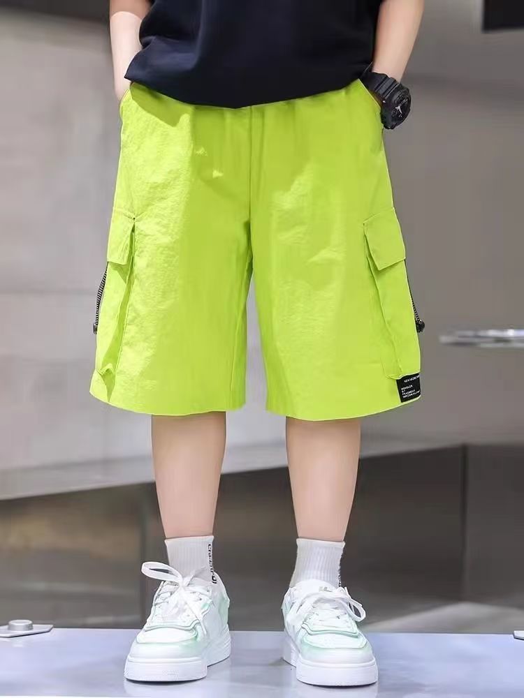 남아 여름 얇은 바지 아동용 속건성 중대형 어린이 반바지 캐주얼 남아 작업복 스포츠 형광색