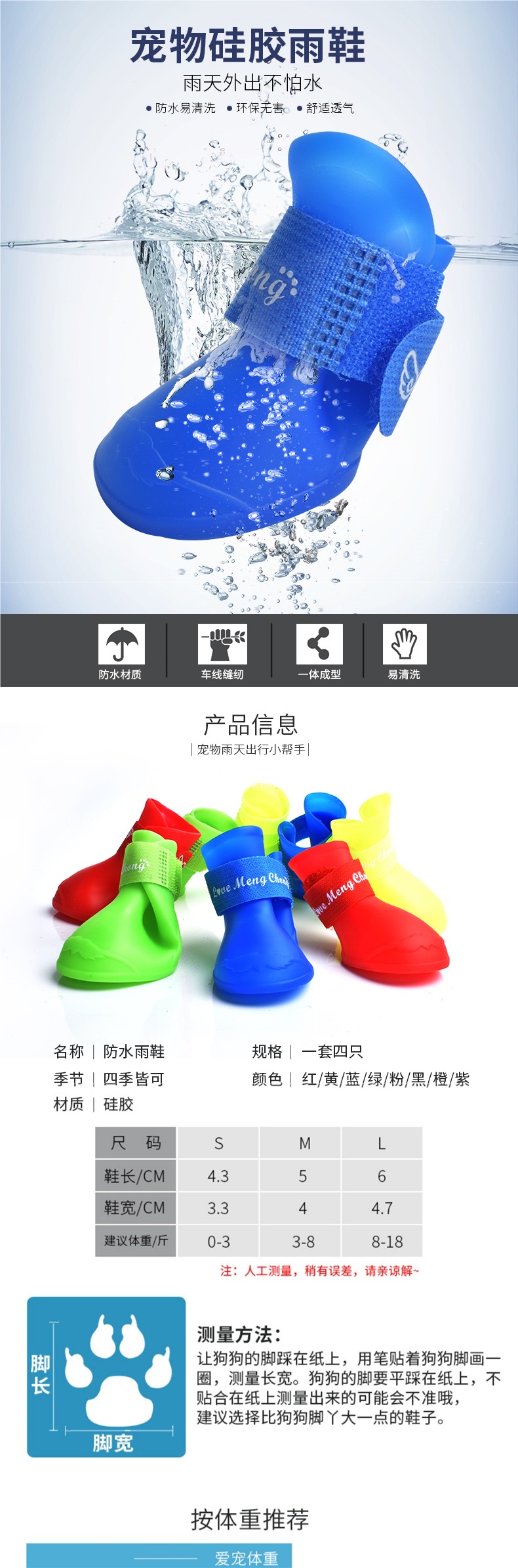 강아지 신발, 방수 신발, 강아지 골든 리트리버 신발 커버, 테디 강아지 발 커버, 비숑 프리제 실리콘 장화, 애완동물스토어 가기