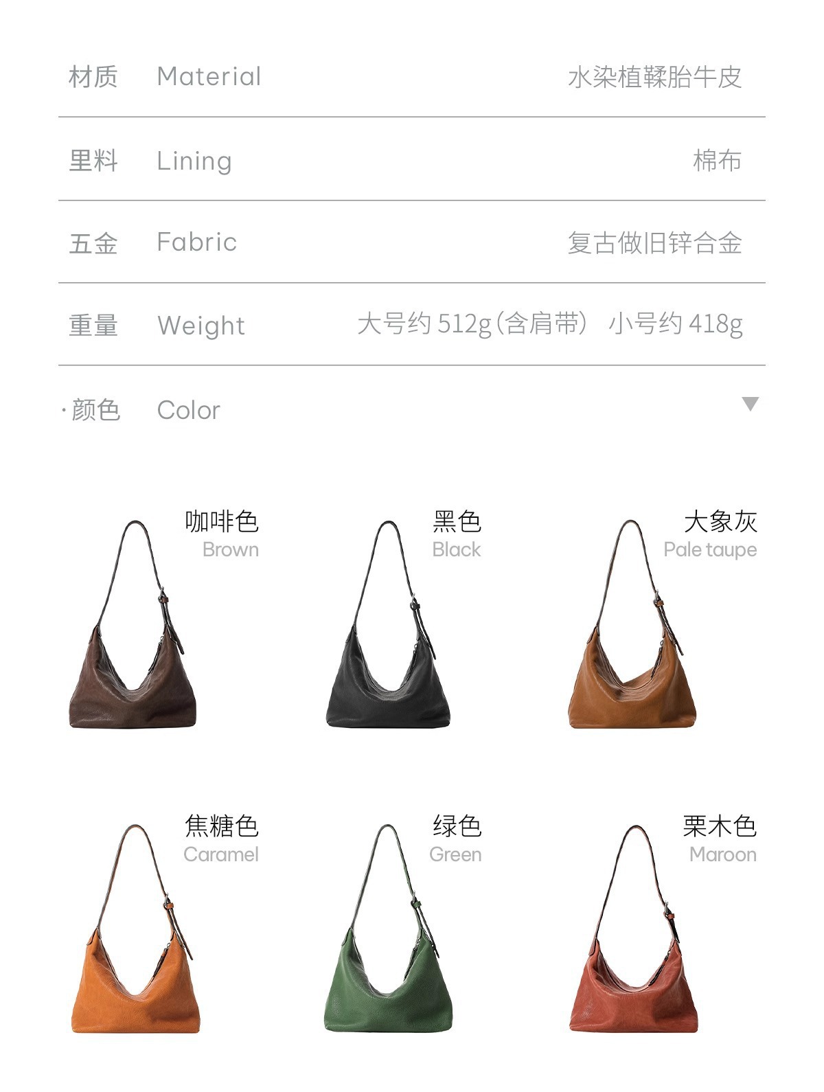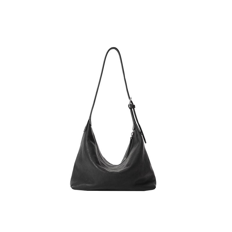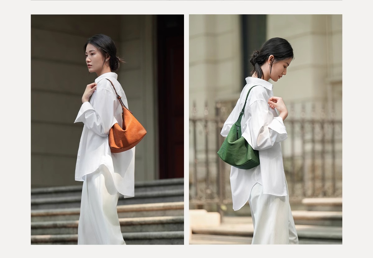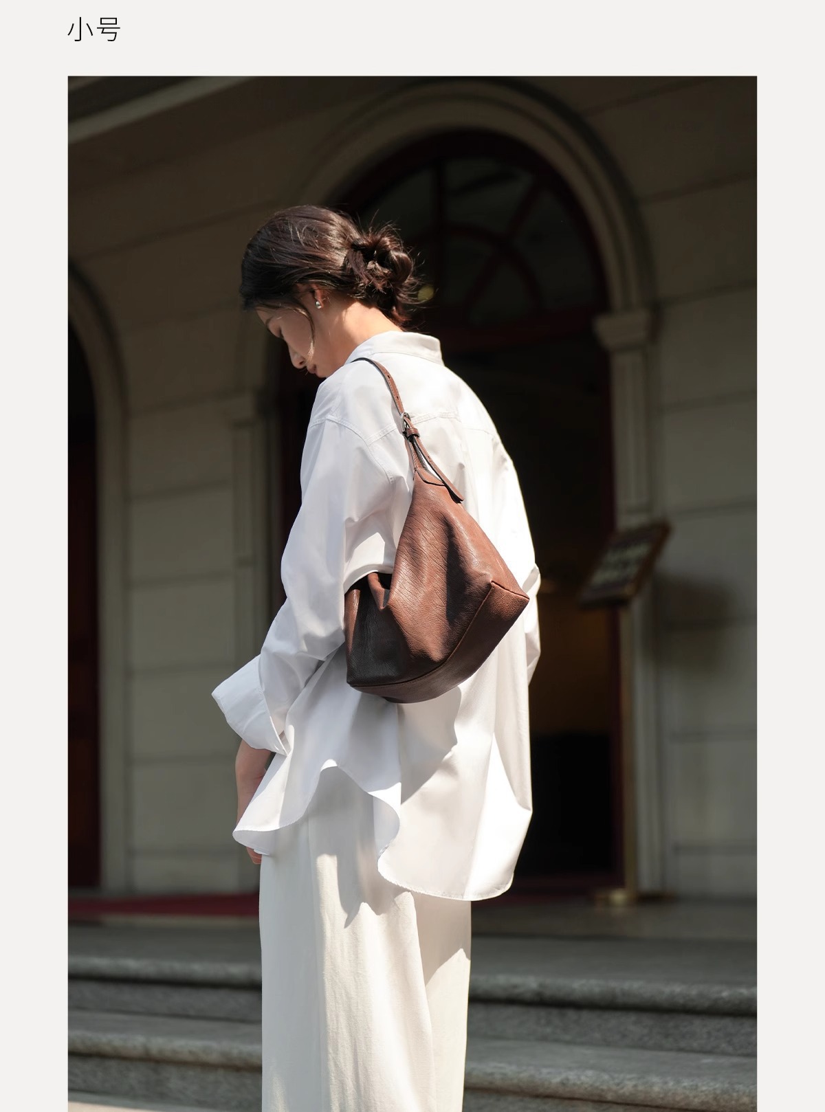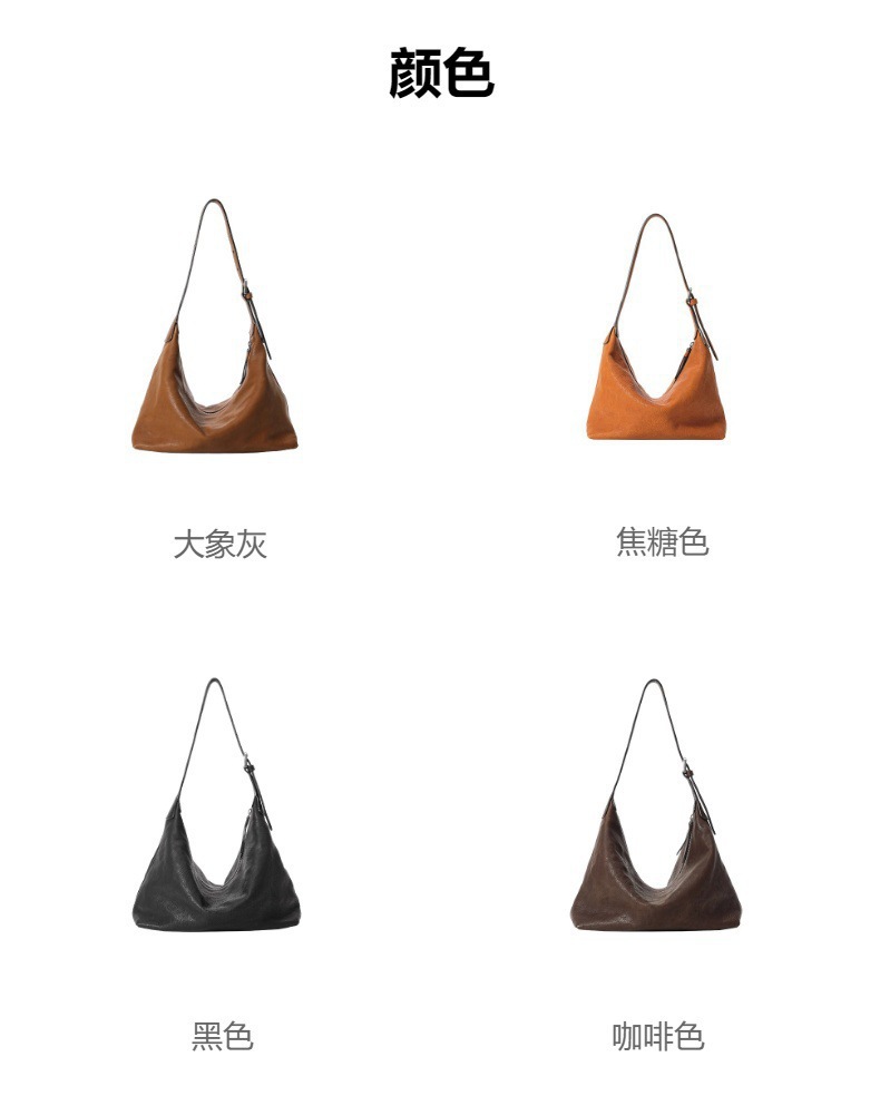 裘真腋下Hobo包头层植鞣牛皮通勤包包休闲百搭单肩真皮饺子包女