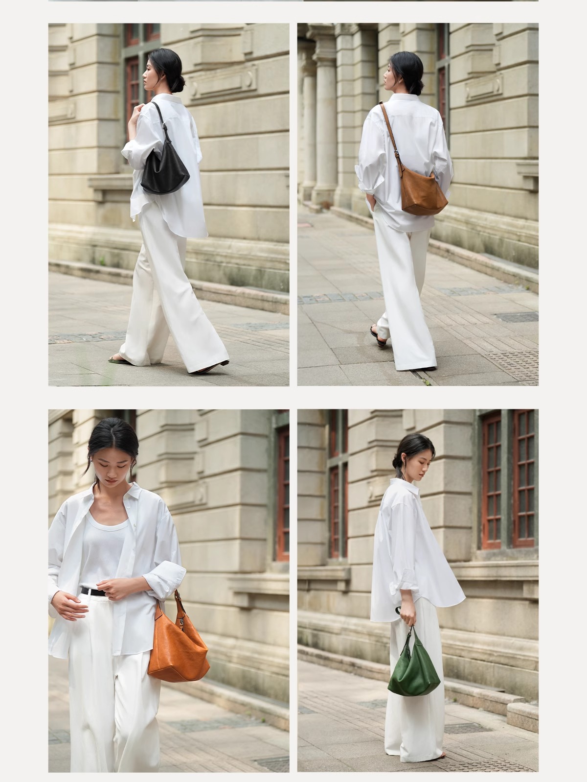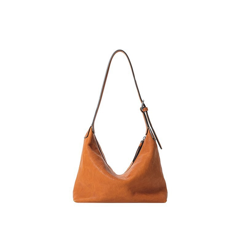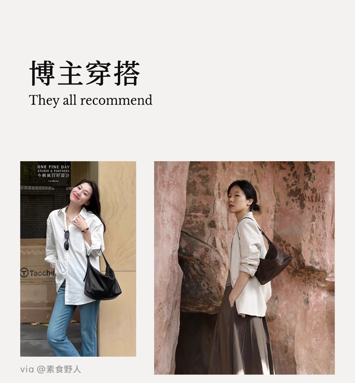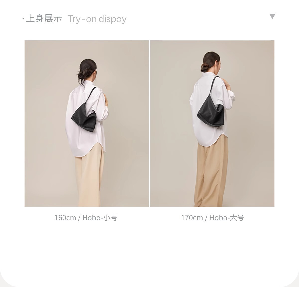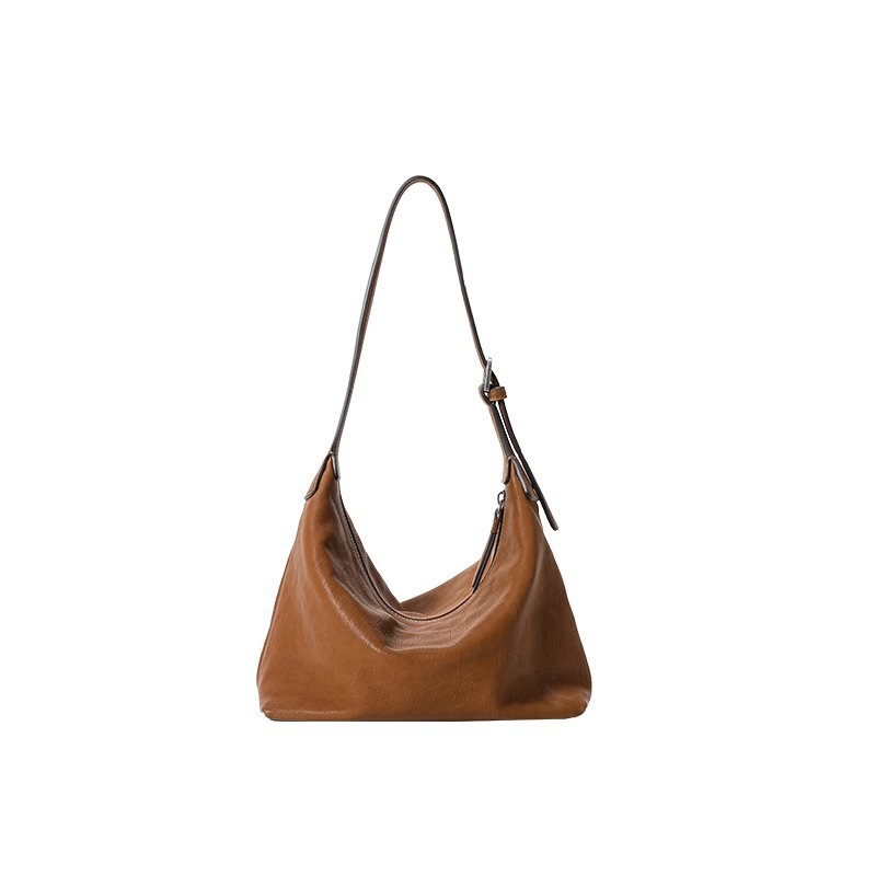 裘真腋下Hobo包头层植鞣牛皮通勤包包休闲百搭单肩真皮饺子包女