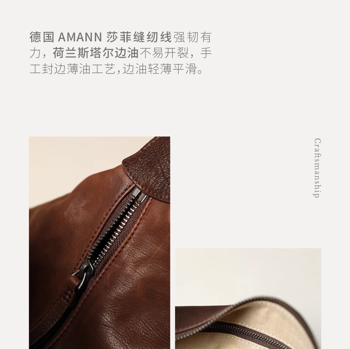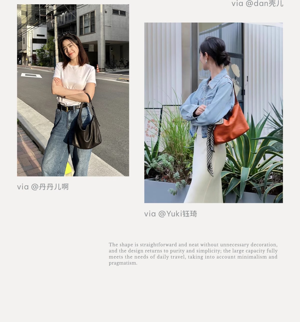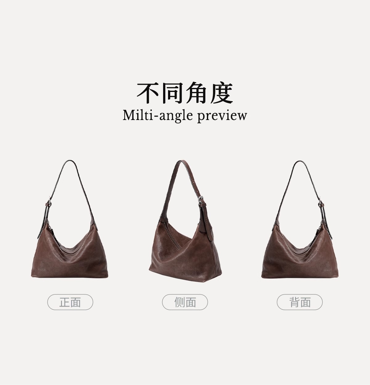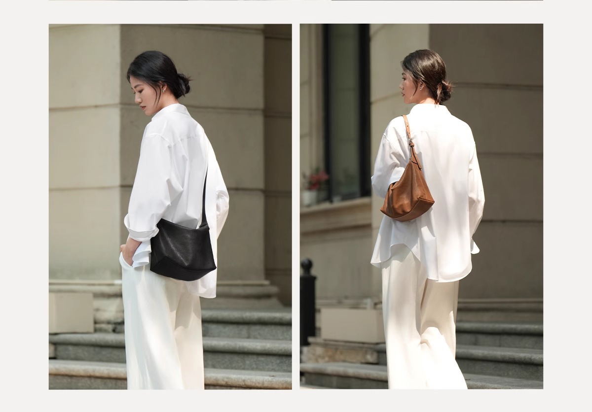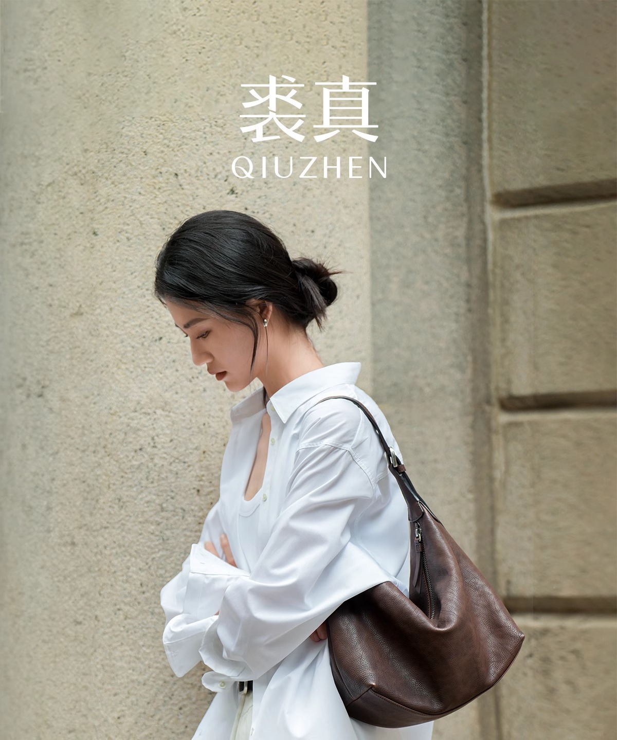 裘真腋下Hobo包头层植鞣牛皮通勤包包休闲百搭单肩真皮饺子包女