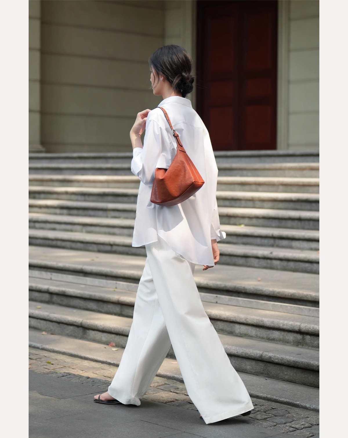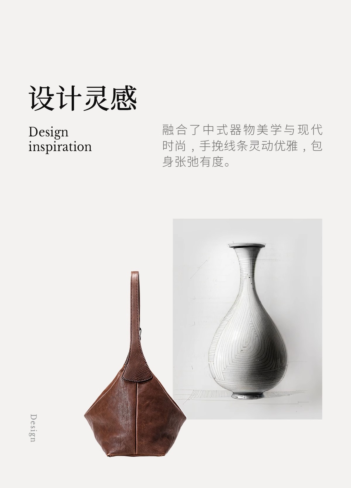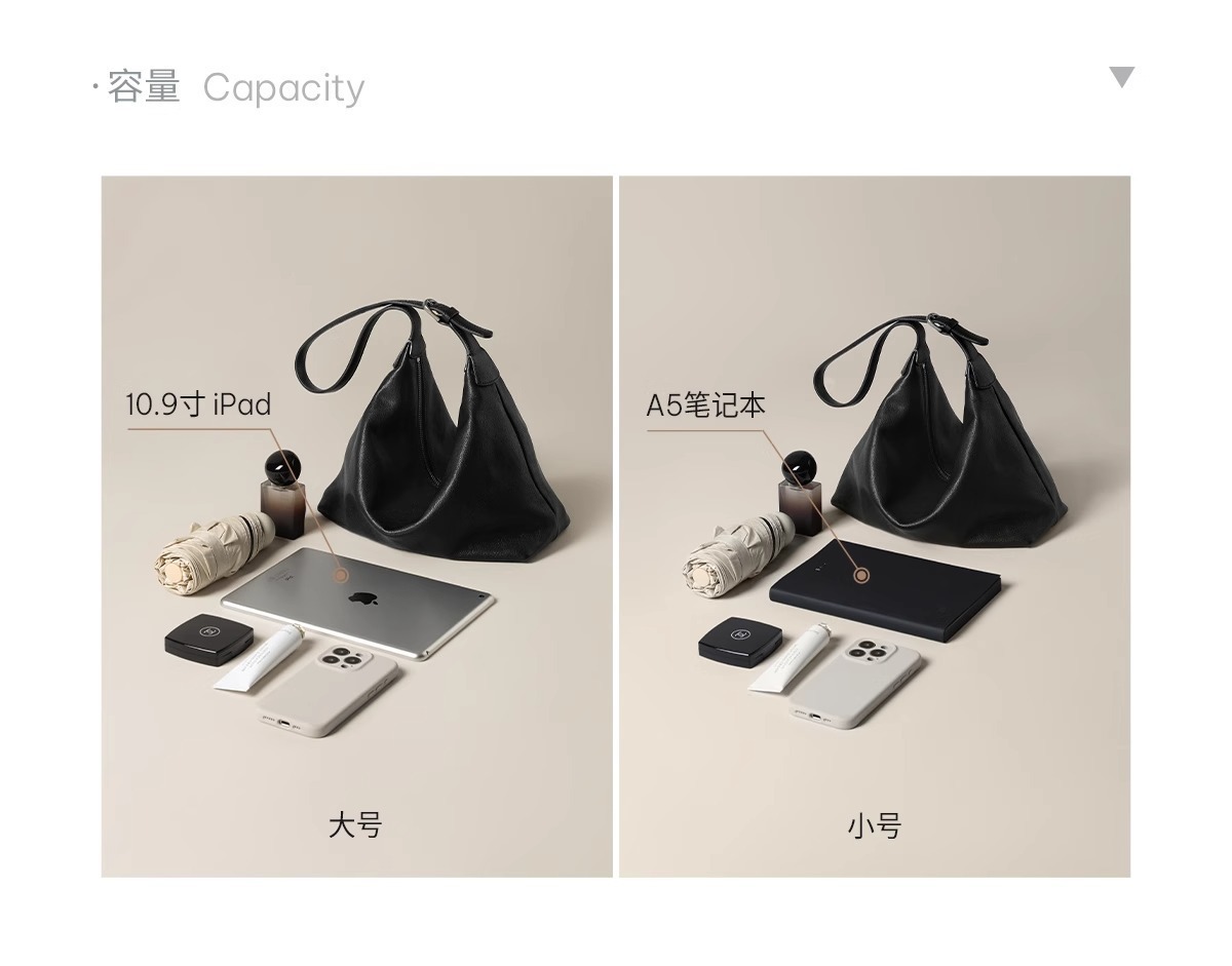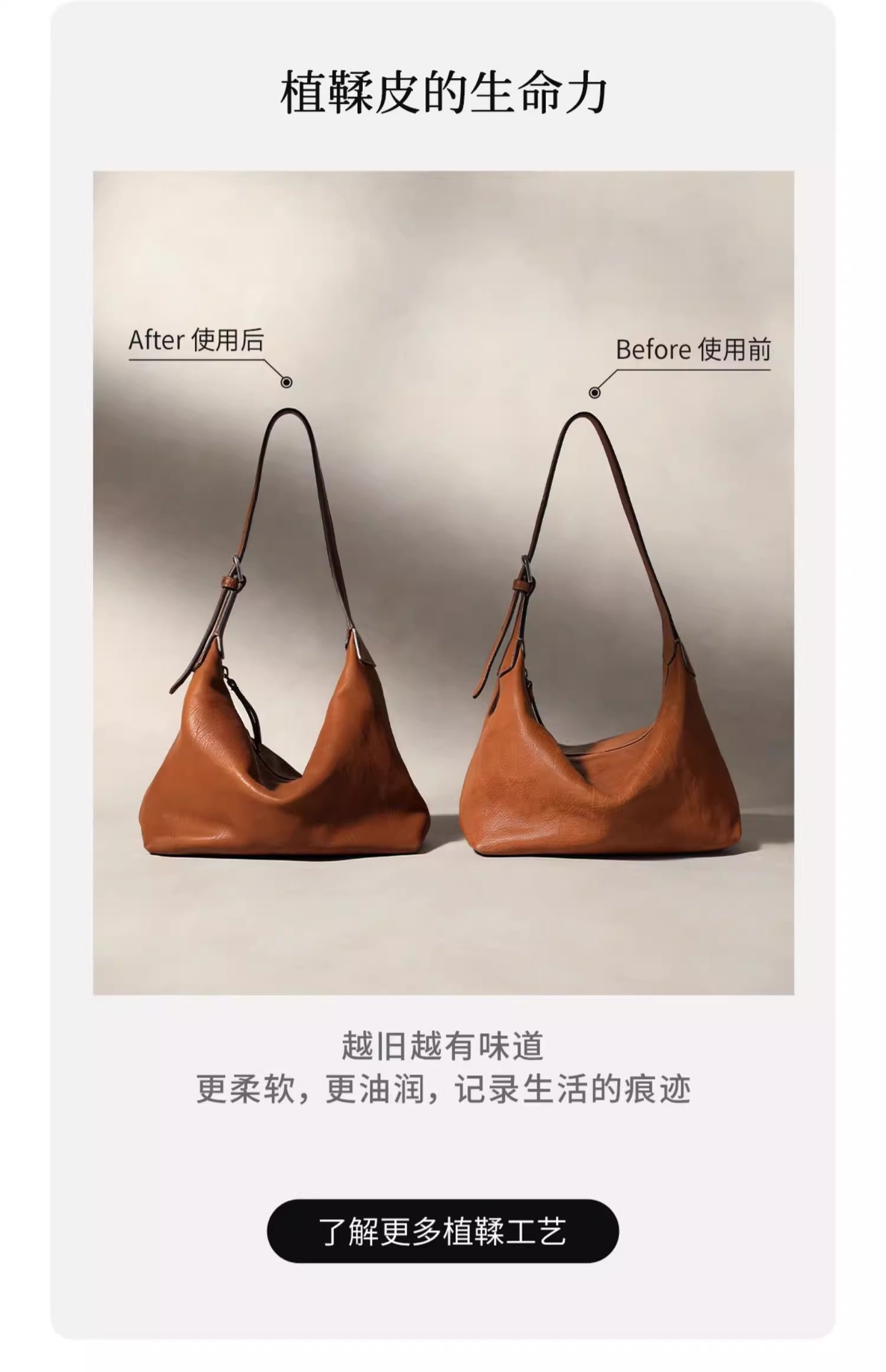 裘真腋下Hobo包头层植鞣牛皮通勤包包休闲百搭单肩真皮饺子包女
