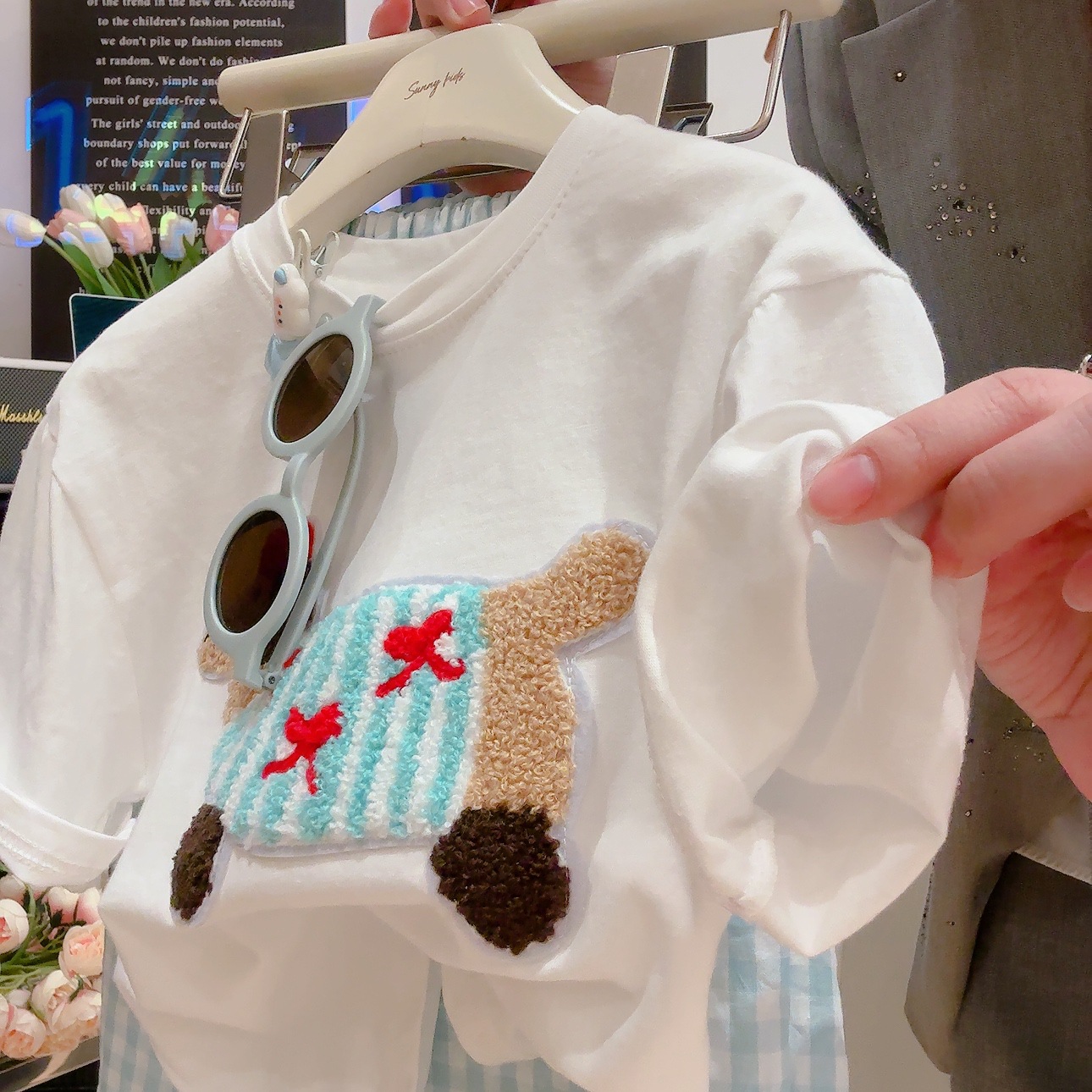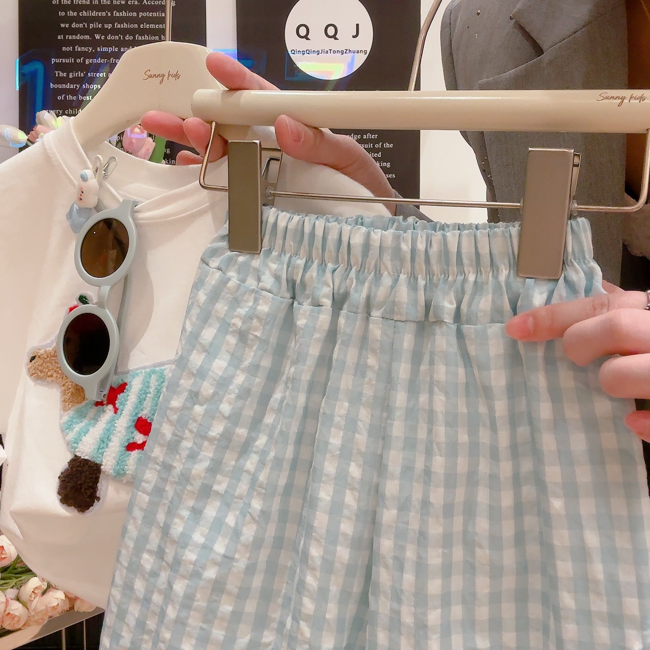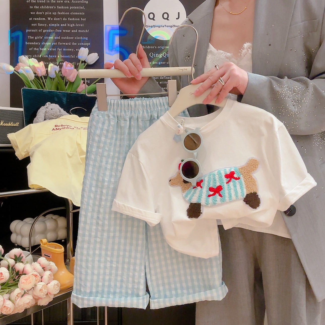 반팔 티셔츠 닥스 훈트 격자 무늬 바지 세트 여름 캐주얼 미국 인쇄 2025 여름 새로운 투피스 세트