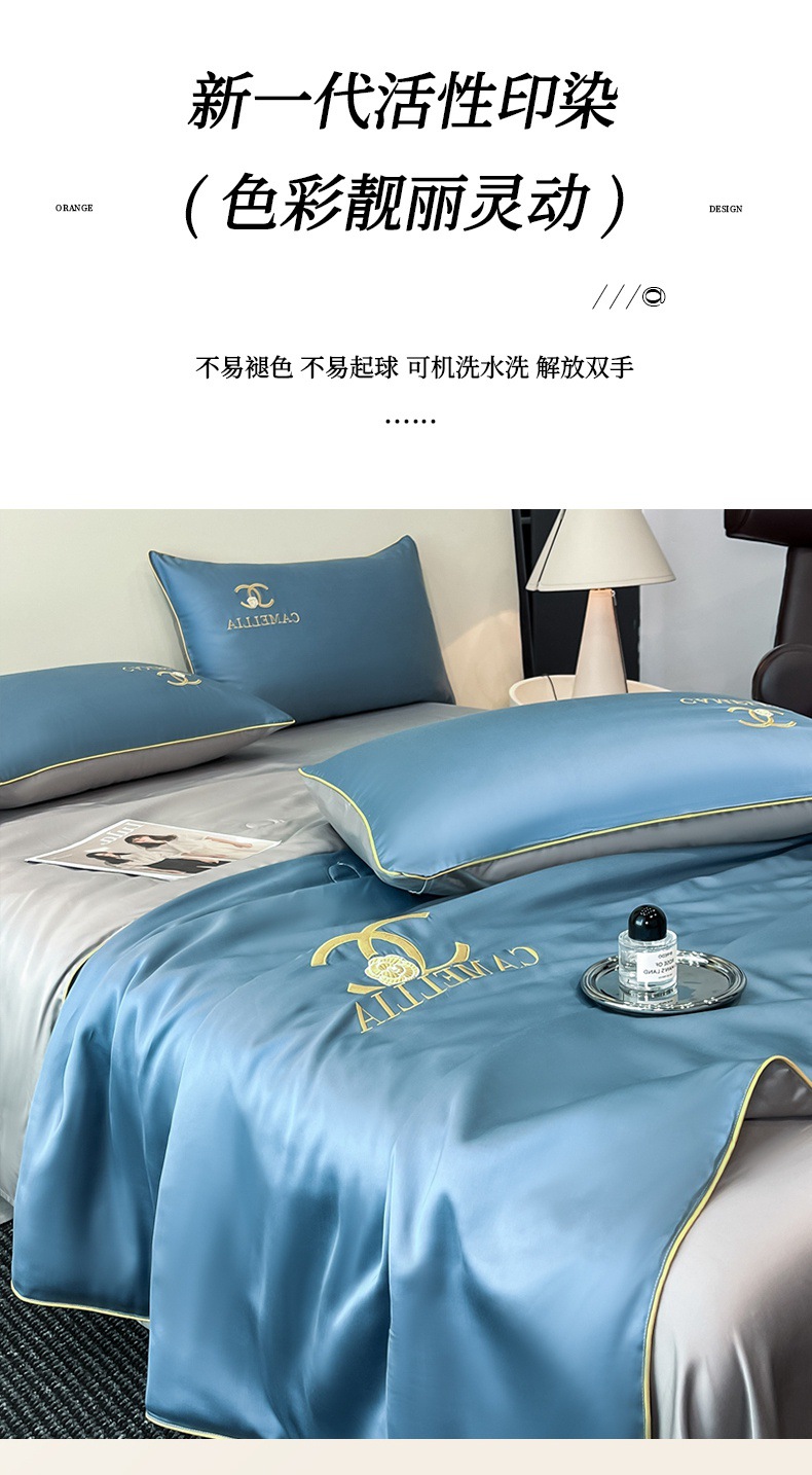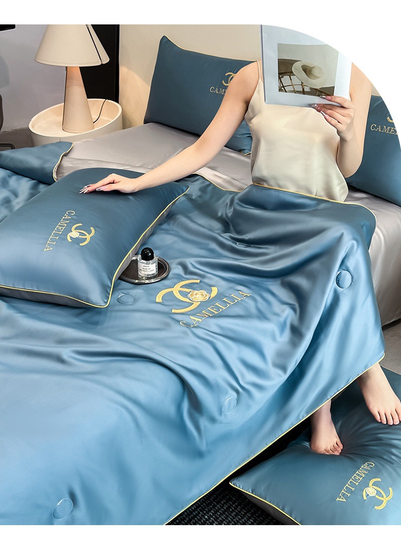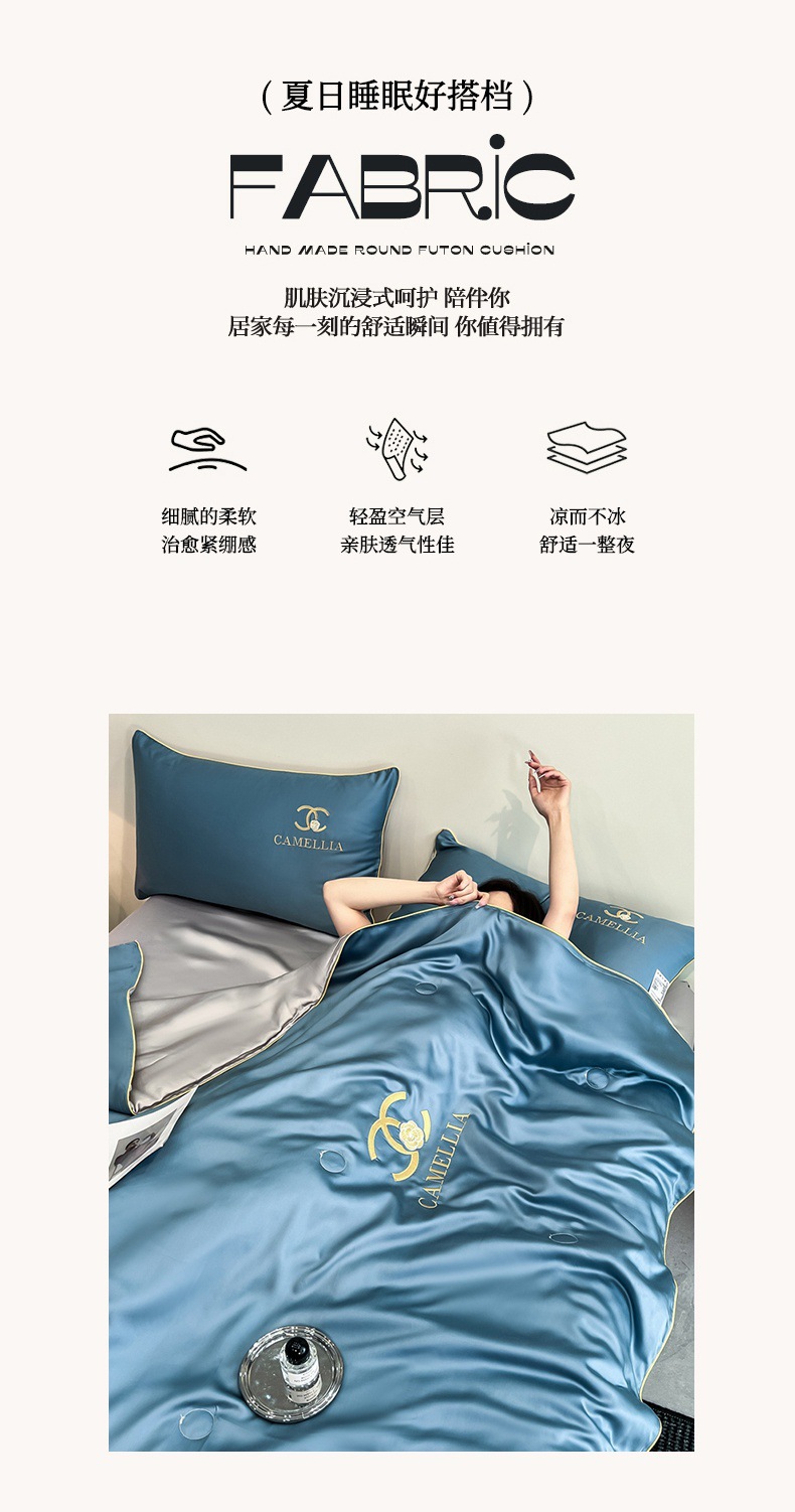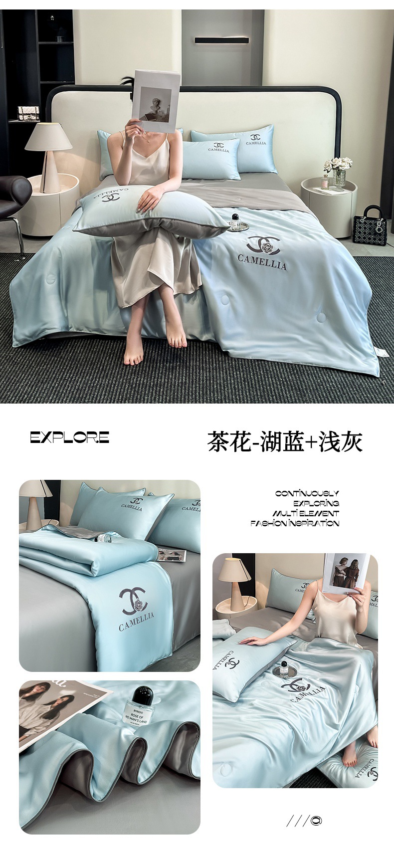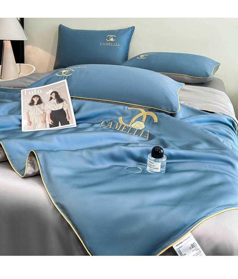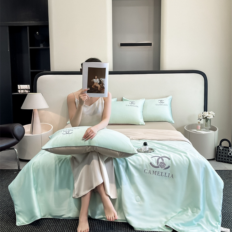 가벼운 럭셔리 아이스 실크 여름 이불 4 종 세트 여름 에어컨 퀼트 여름 시원한 이불 텐셀 더블 기숙사 싱글 퀼트 얇은 이불 도매