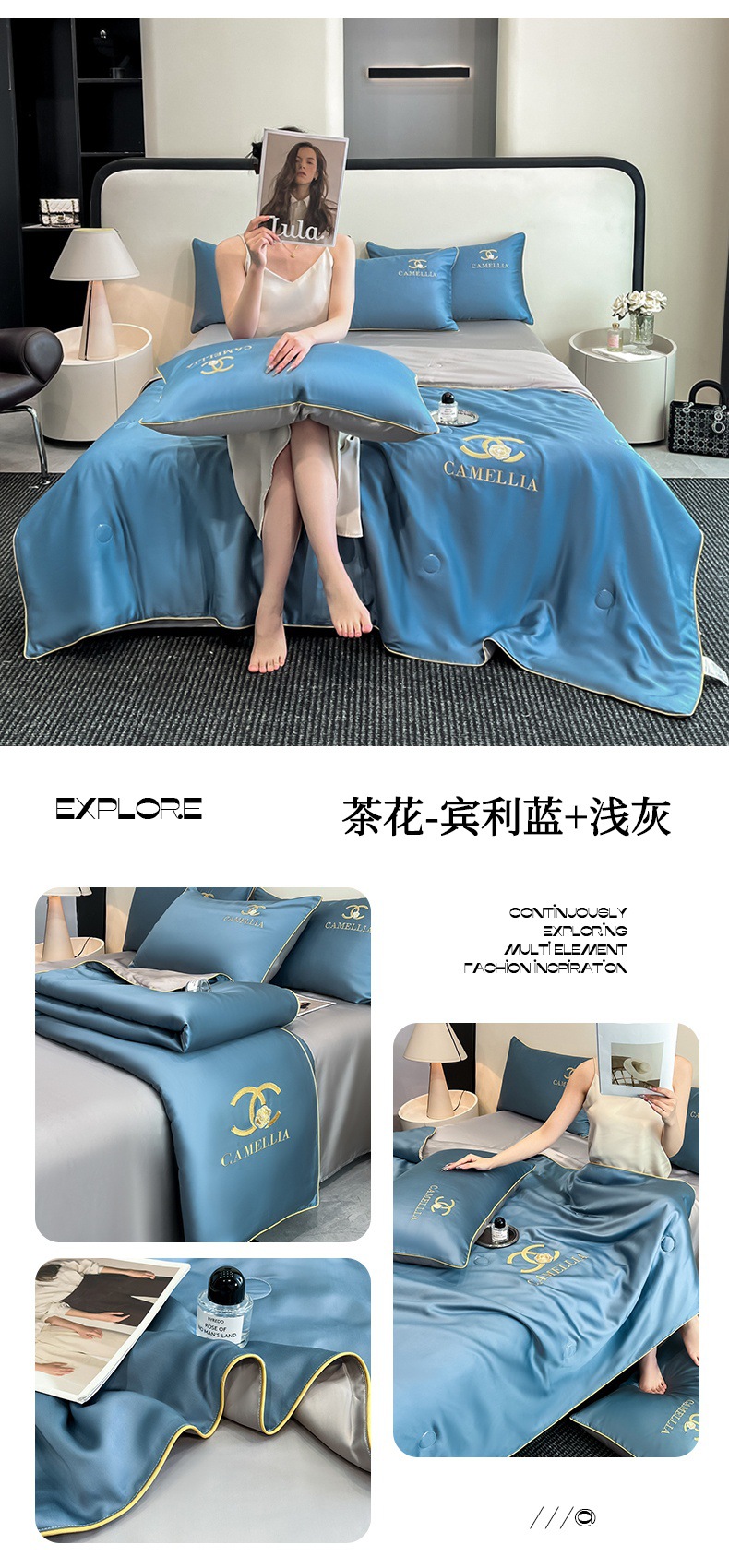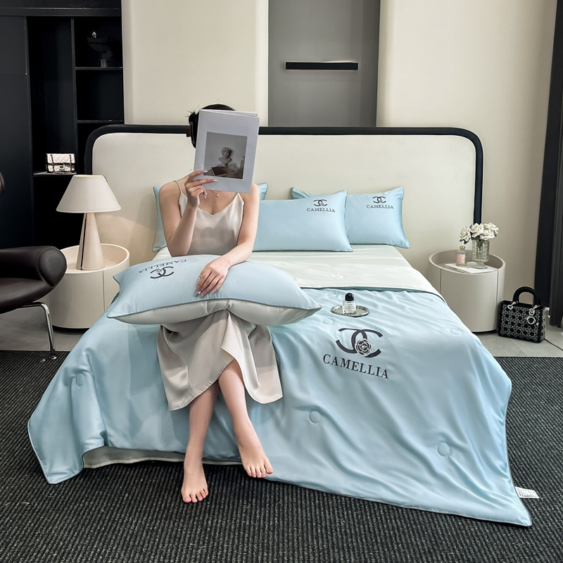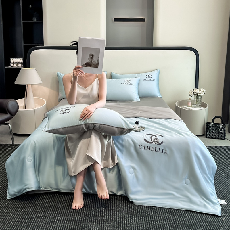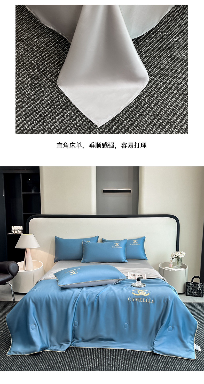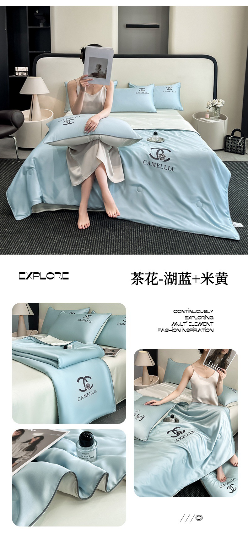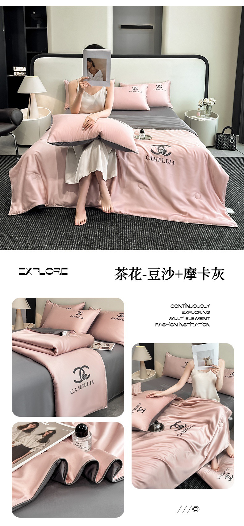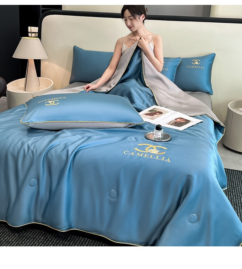 가벼운 럭셔리 아이스 실크 여름 이불 4 종 세트 여름 에어컨 퀼트 여름 시원한 이불 텐셀 더블 기숙사 싱글 퀼트 얇은 이불 도매