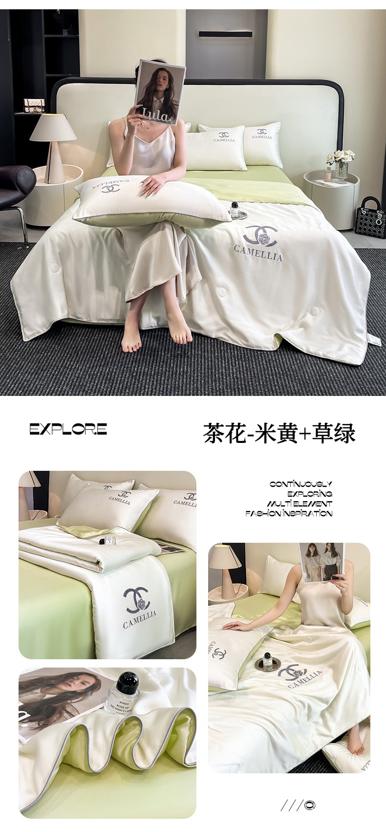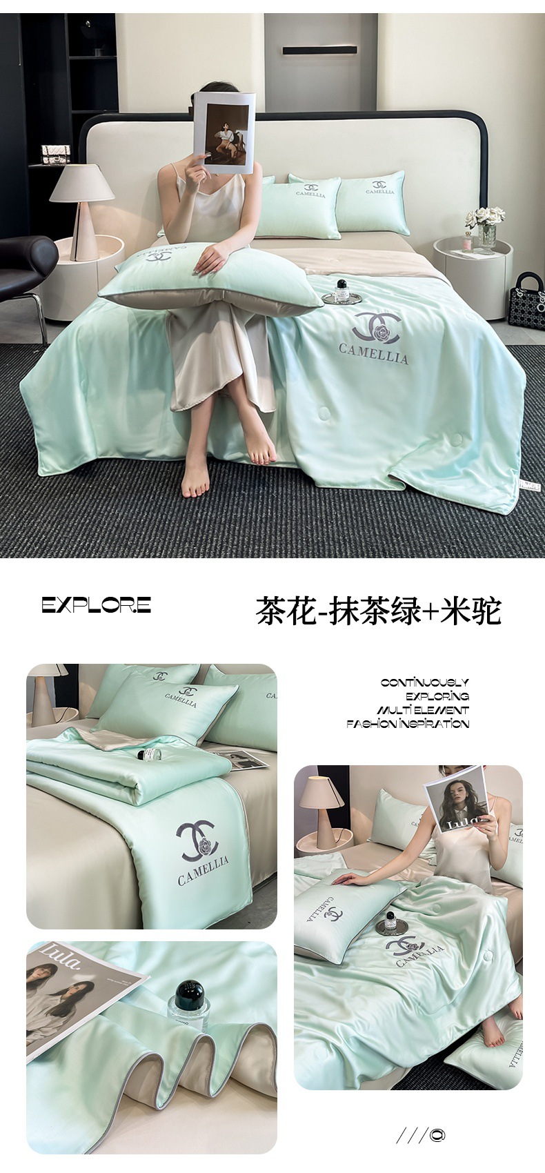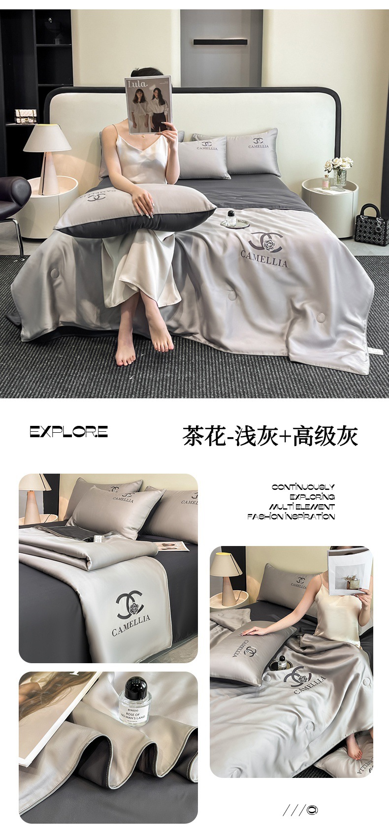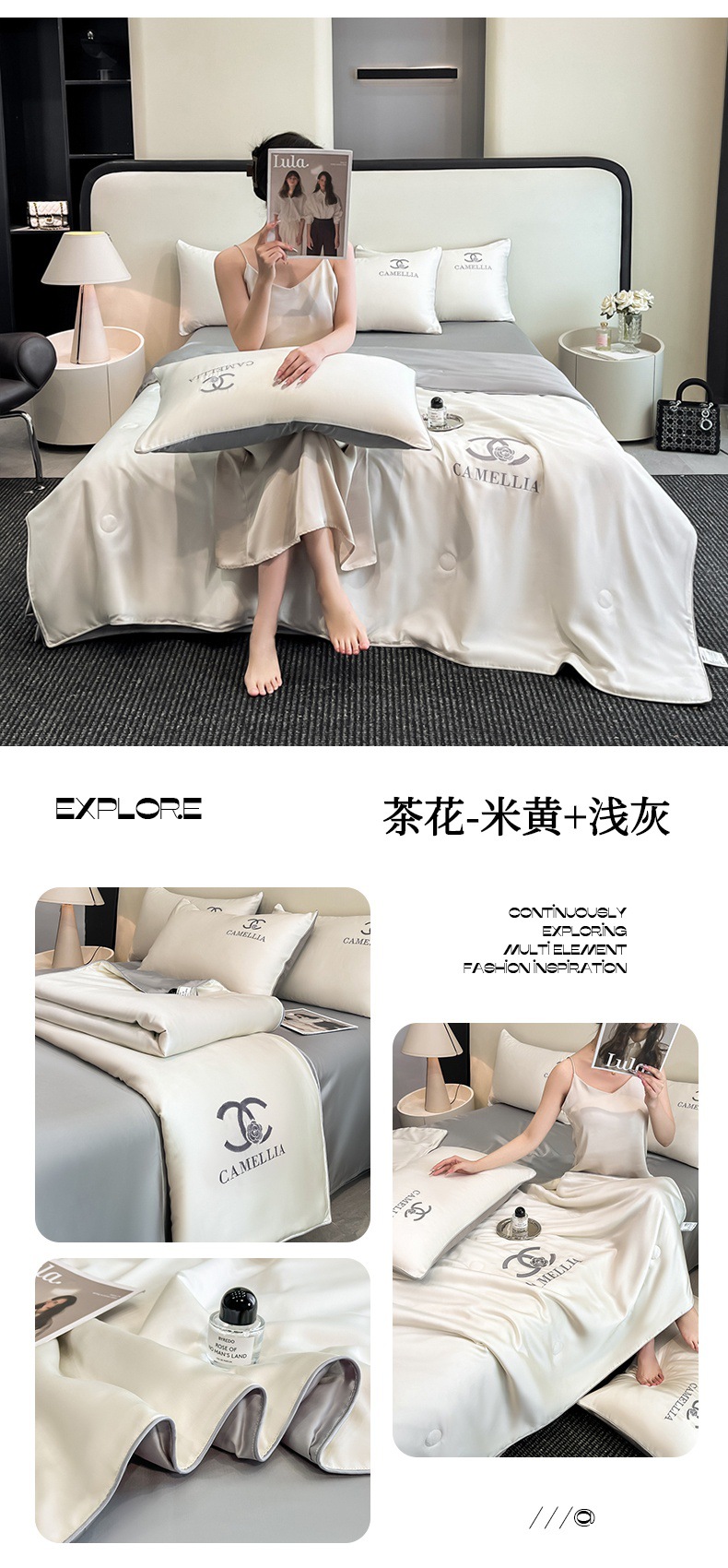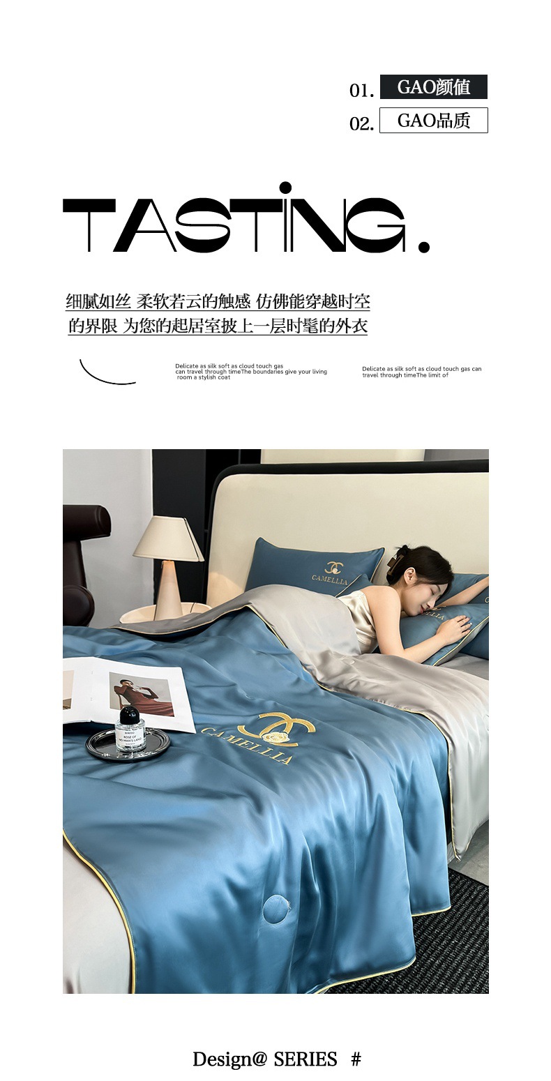 가벼운 럭셔리 아이스 실크 여름 이불 4 종 세트 여름 에어컨 퀼트 여름 시원한 이불 텐셀 더블 기숙사 싱글 퀼트 얇은 이불 도매