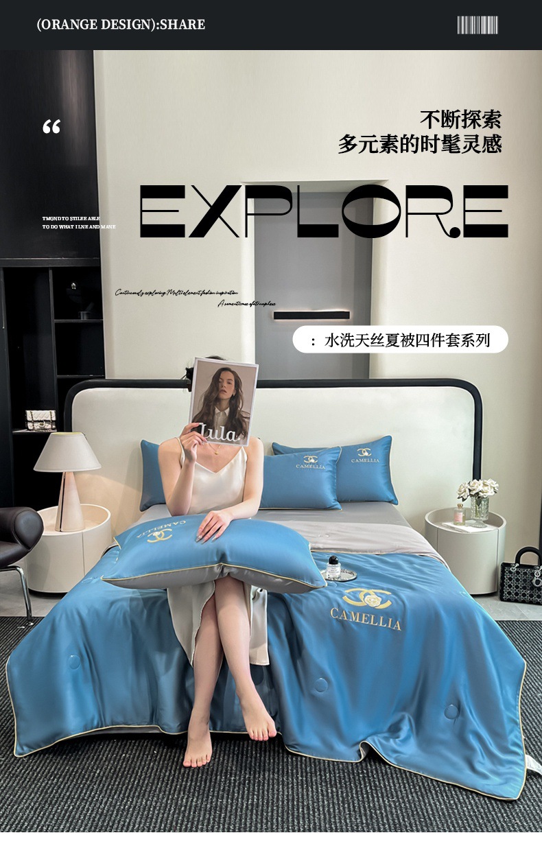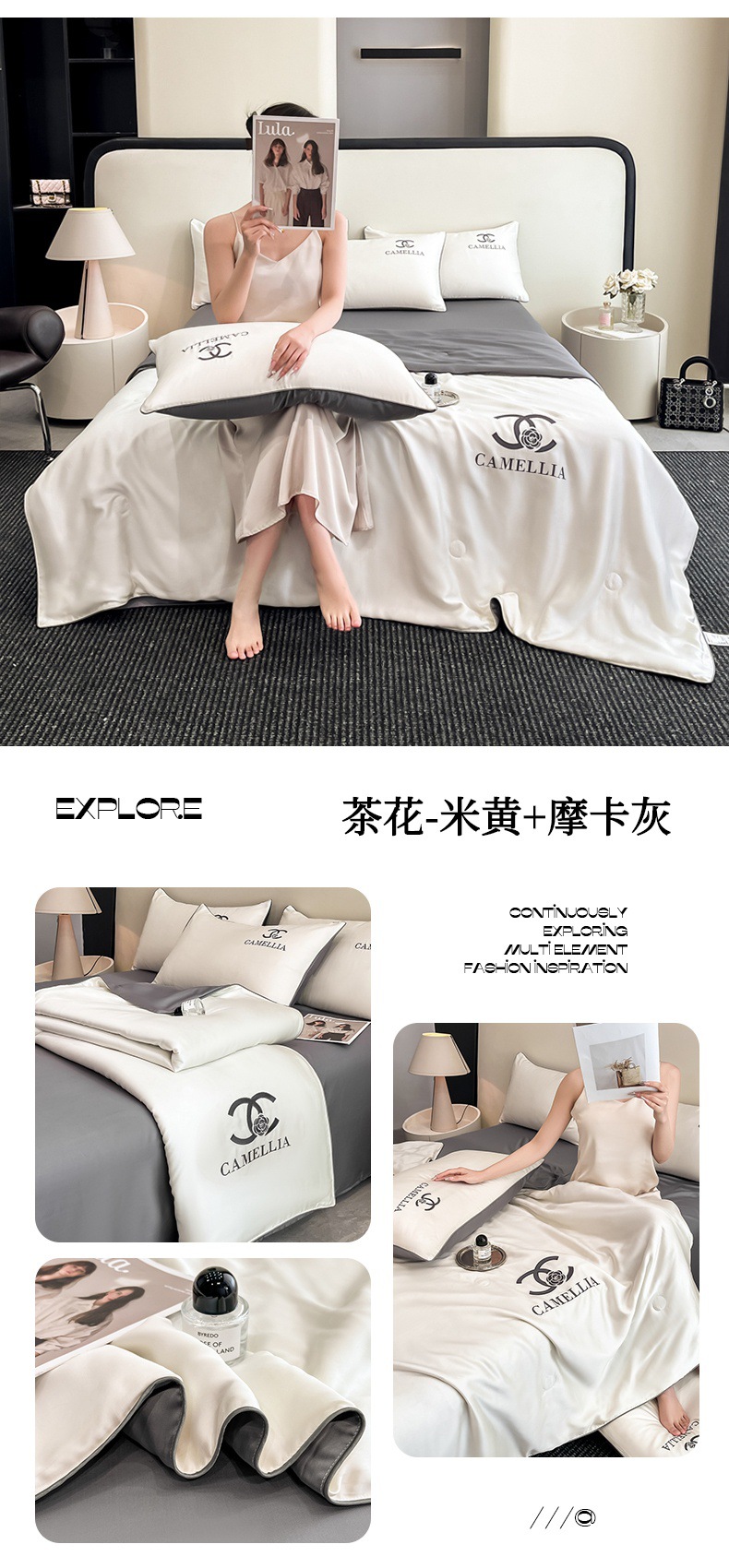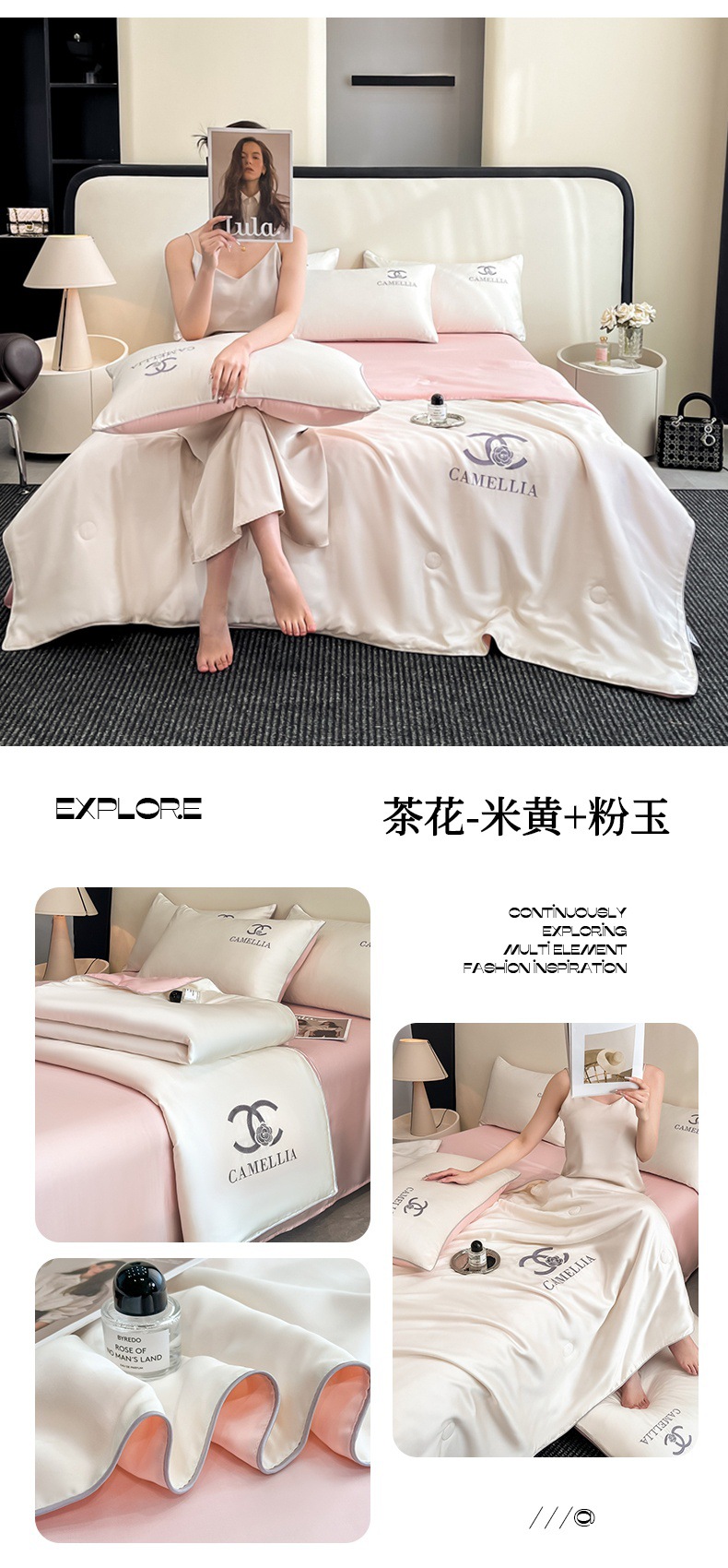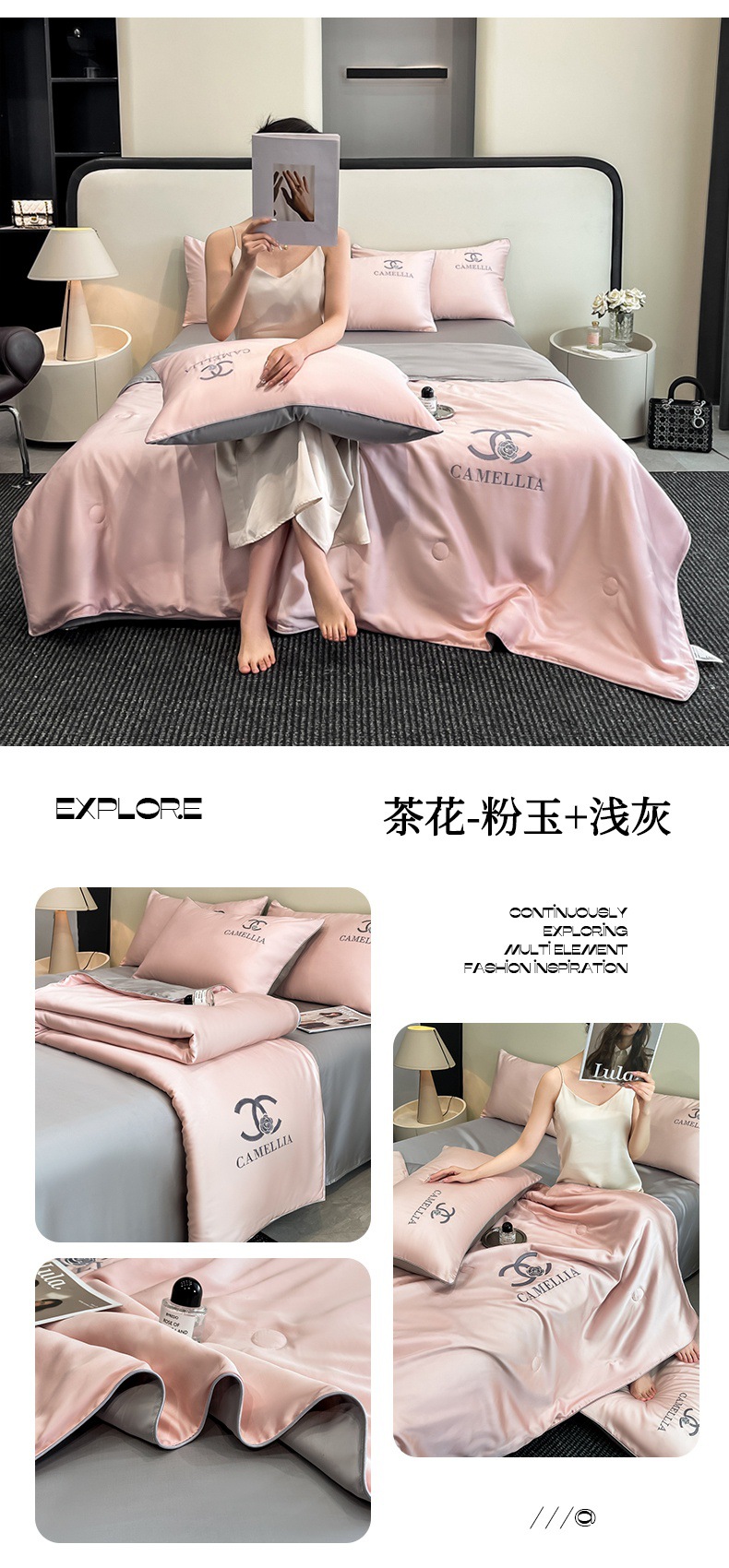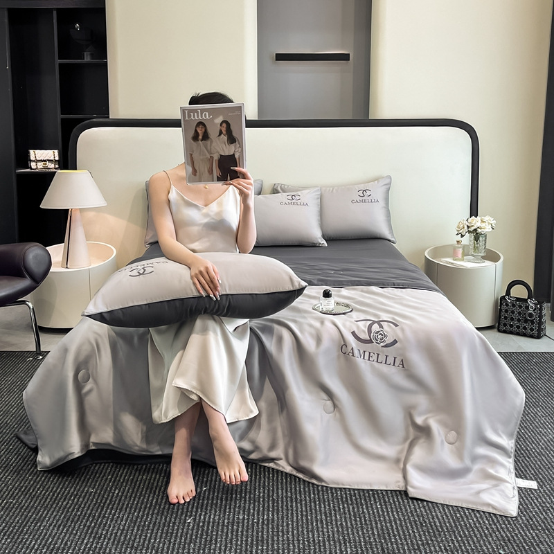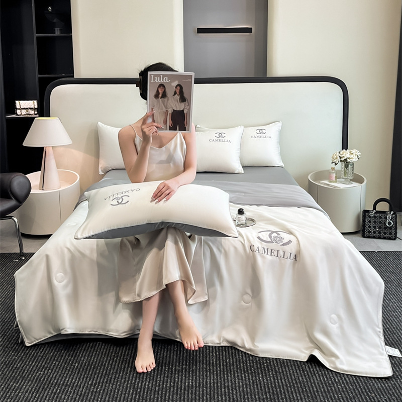 가벼운 럭셔리 아이스 실크 여름 이불 4 종 세트 여름 에어컨 퀼트 여름 시원한 이불 텐셀 더블 기숙사 싱글 퀼트 얇은 이불 도매