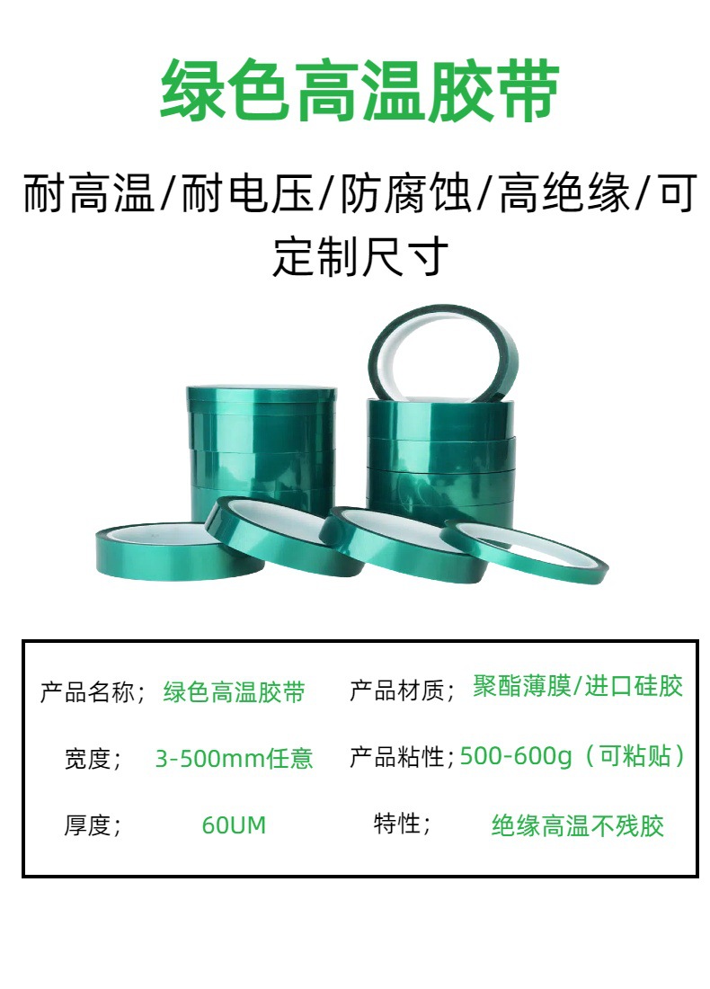 애완 동물 녹색 고온 테이프 전기 도금 스프레이 페인트 마스킹 고온 실리콘 테이프 공장 콘센트스토어 가기