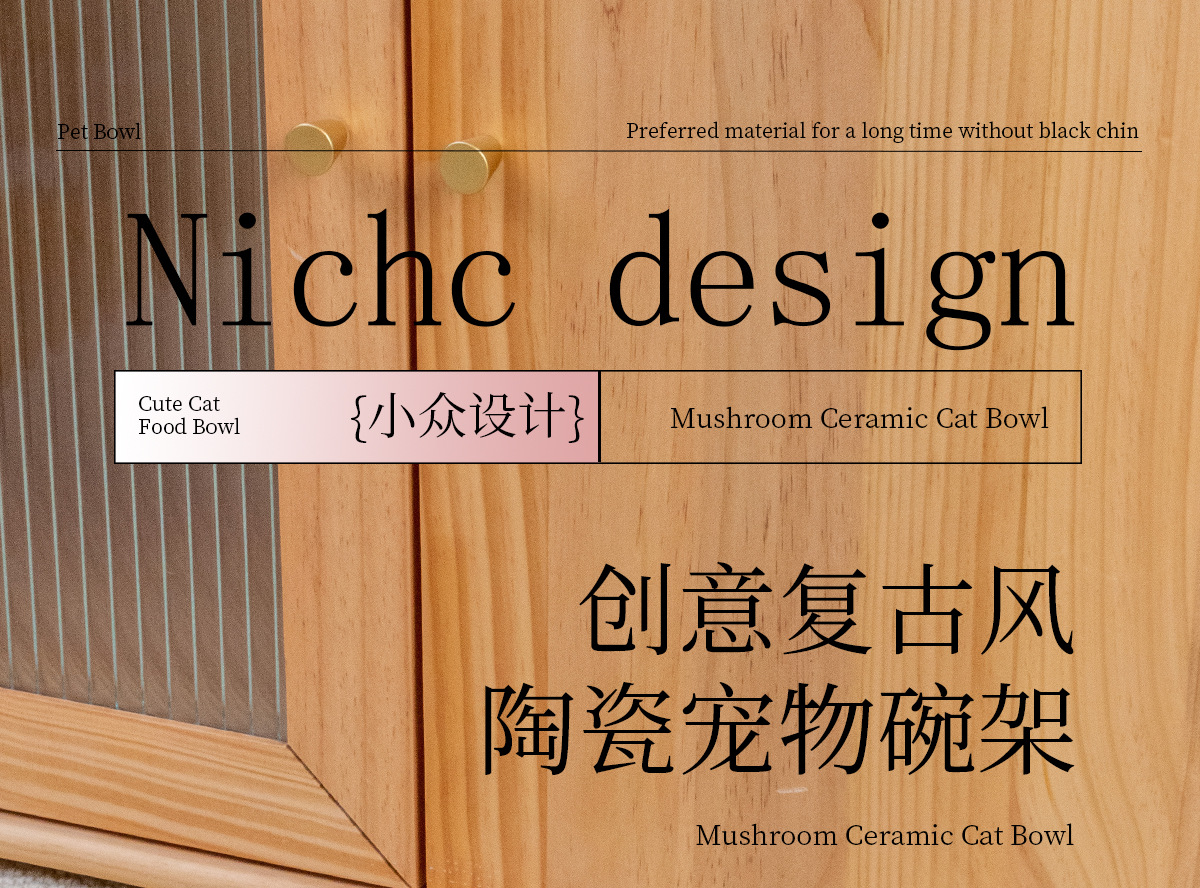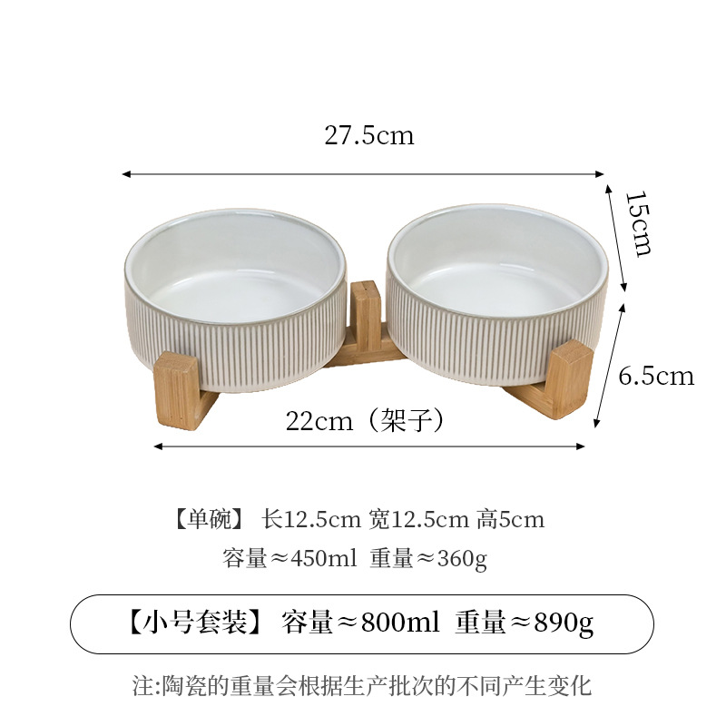 흰색 유약 수직 패턴 직선 그릇 대나무 프레임 빈티지 세라믹 애완 동물 그릇 반대로 뒤집는 고양이 그릇 개 그릇 마시는 분지