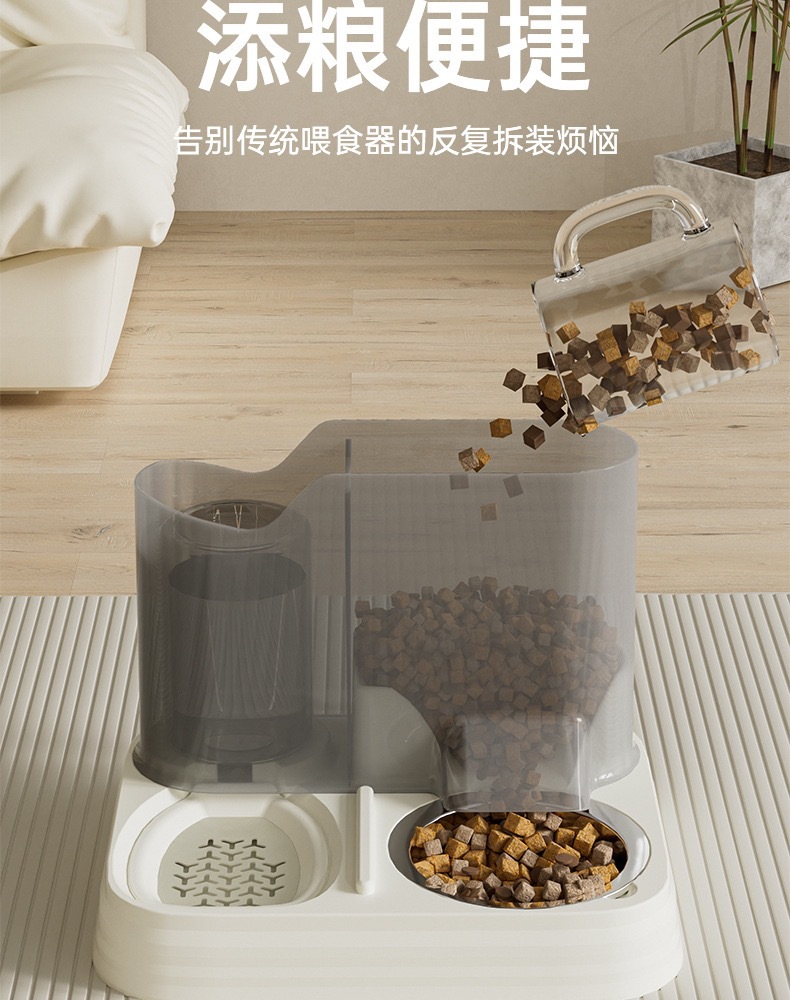 • 크림 화이트 [양용 급식기] - 스테인리스 스틸 식기 포함