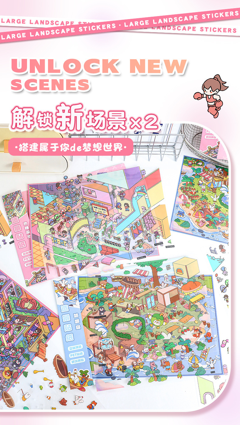 만화 38.0 조경 스티커 3D 입체 소형 장면 콜라주 학생 대형 스택 핸드북 감압 붙여 넣기 그림스토어 가기