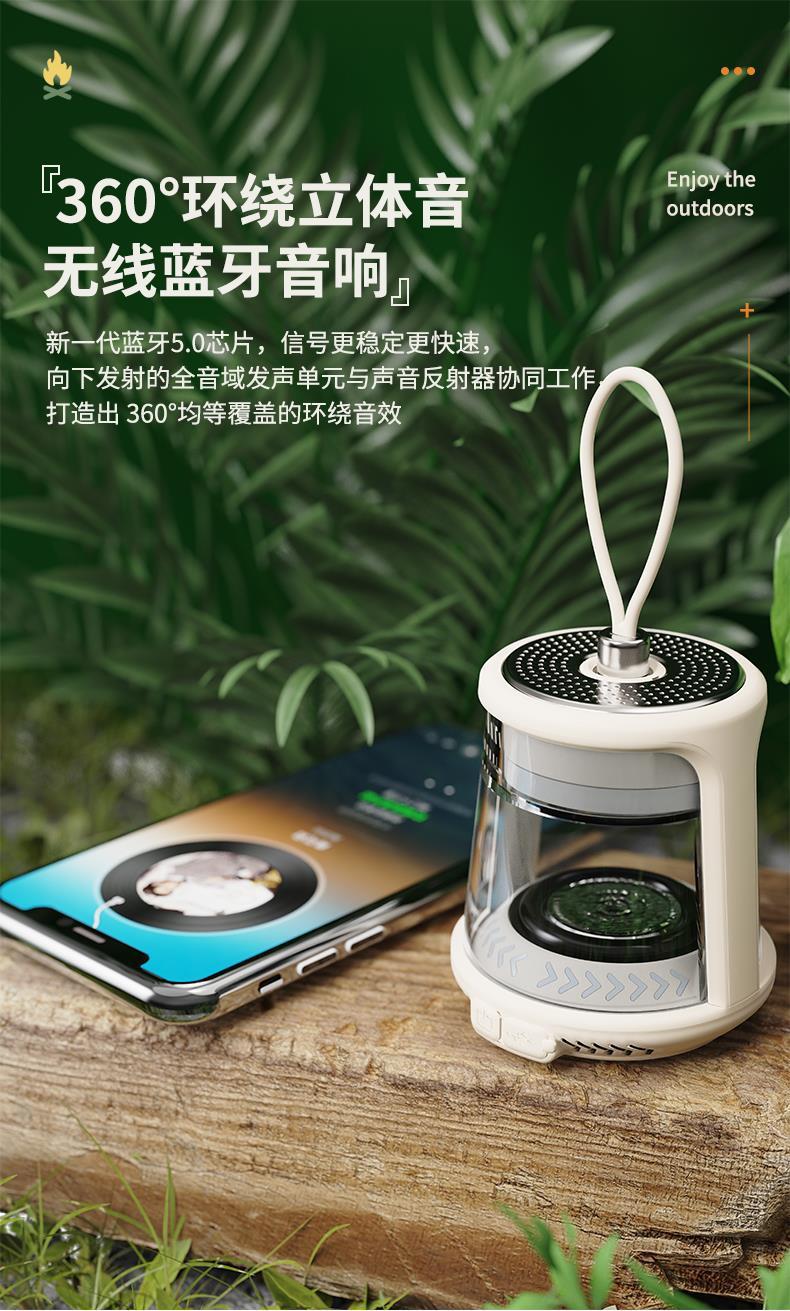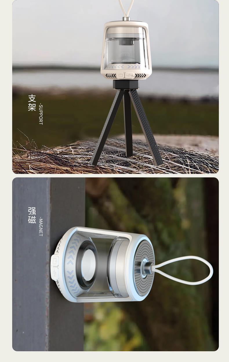 Q6G 야외 캠핑 슈퍼 긴 배터리 수명 교수형 텐트 분위기 조명 조명 캠핑 충전 저장 블루투스 사운드