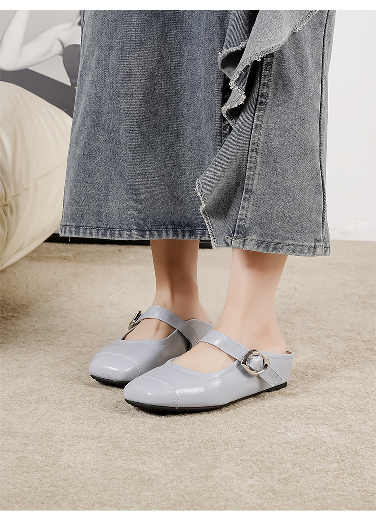 여성용 와이드 팻 피트 플러스 사이즈 신발 바오터우 뮬러 슬리퍼 여성용 여름 외부 플랫 하프 슬리퍼 게으른 슬라이드 샌들스토어 가기