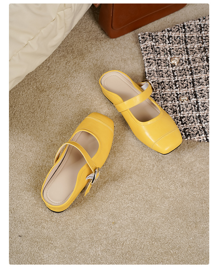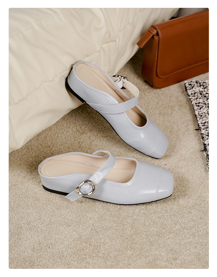 여성용 와이드 팻 피트 플러스 사이즈 신발 바오터우 뮬러 슬리퍼 여성용 여름 외부 플랫 하프 슬리퍼 게으른 슬라이드 샌들