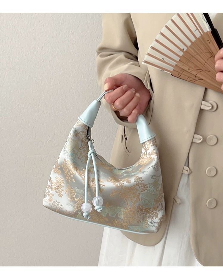 손을 들고 새로운 중국 스타일 국가 스타일 겨드랑이 가방 여성의 2025 여름 자수 어깨 크로스 바디 백스토어 가기