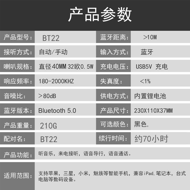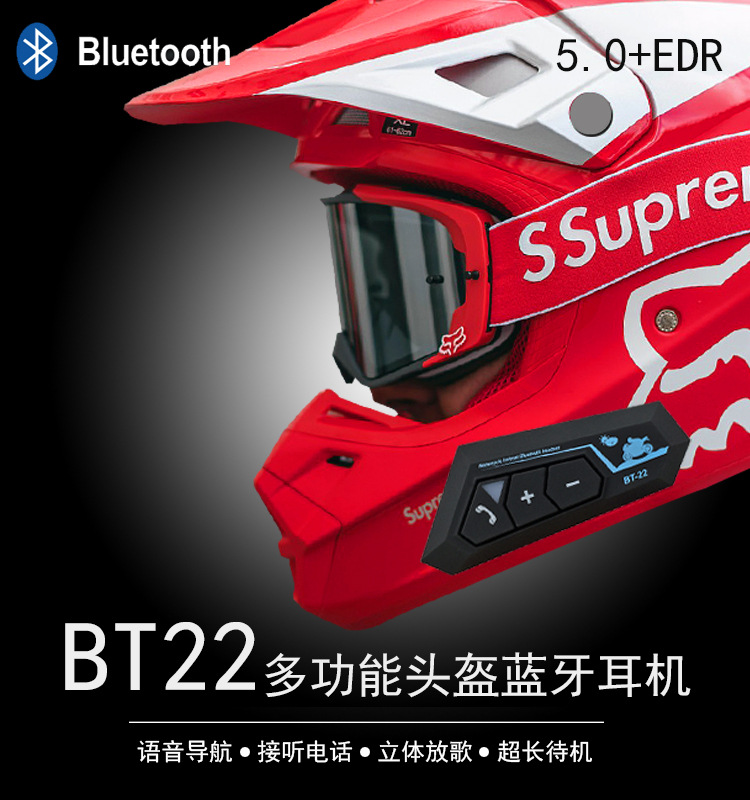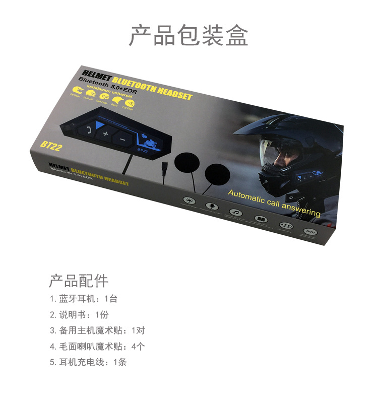 BT22 오토바이 헬멧 블루투스 헤드셋 블루투스 5.0 헤드셋 자동 통화 응답 방수 소음 감소