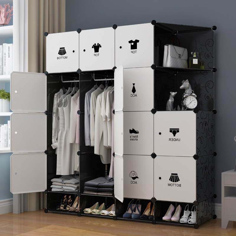 옷장 철제 프레임 플라스틱 수납 패브릭 간이 옷장 경제적인 수납장 간이 1인용 임대실 B^t