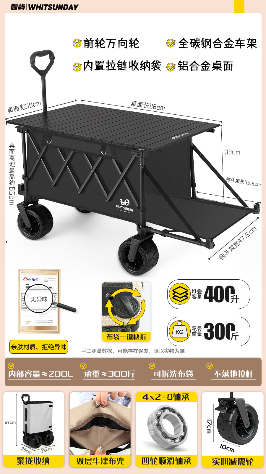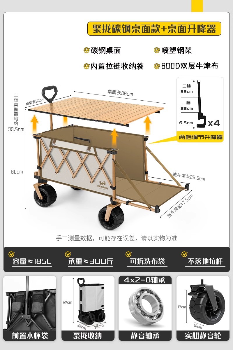 • 오프로드 모델 [견인 버킷] 모델 + 86CM 노란색 나뭇결 탄소강 데스크탑 [크레센트 화이트] + [확대] 파라솔