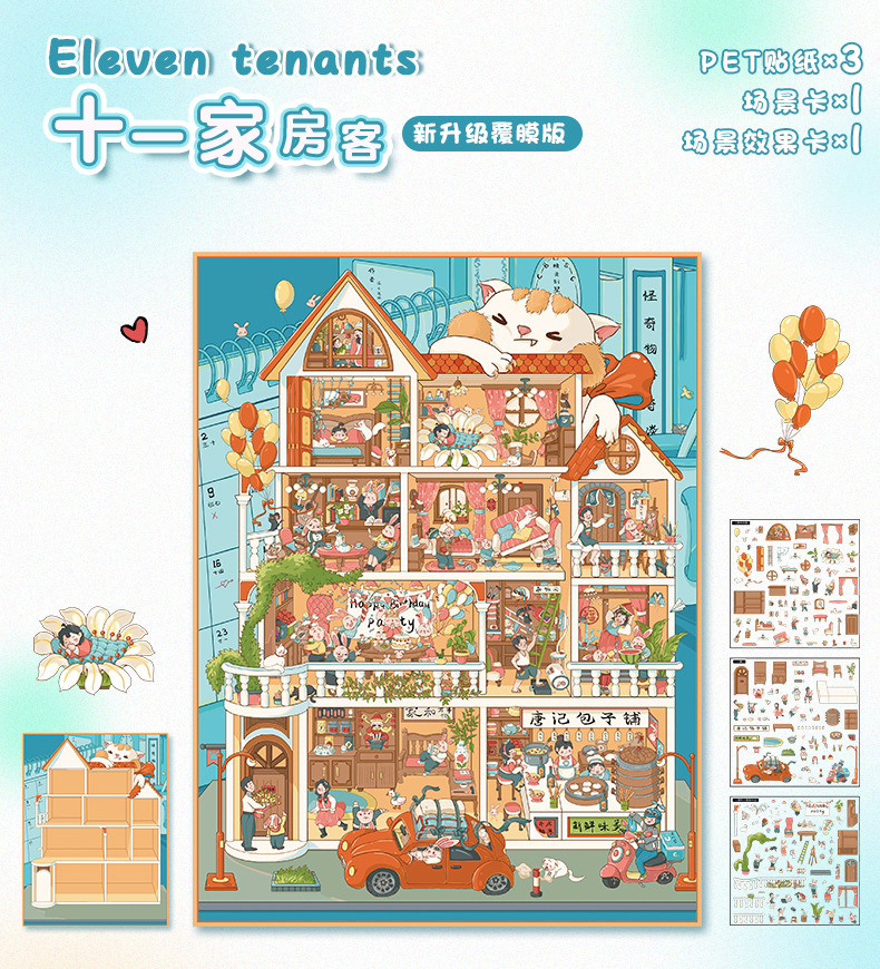 만화 조경 스티커, 미니어처 장면 스티커, 학생 DIY 감압 핸드북 스티커, 3D 입체 스티커, 도매스토어 가기