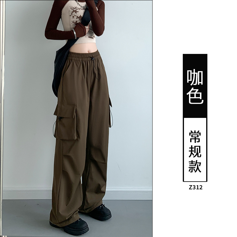여성을위한 얼음 실크 빠른 건조 스포츠 바지 봄과 여름 얇은 2025 새로운 충전 등산 낙하산 작업복 바지 도매스토어 가기