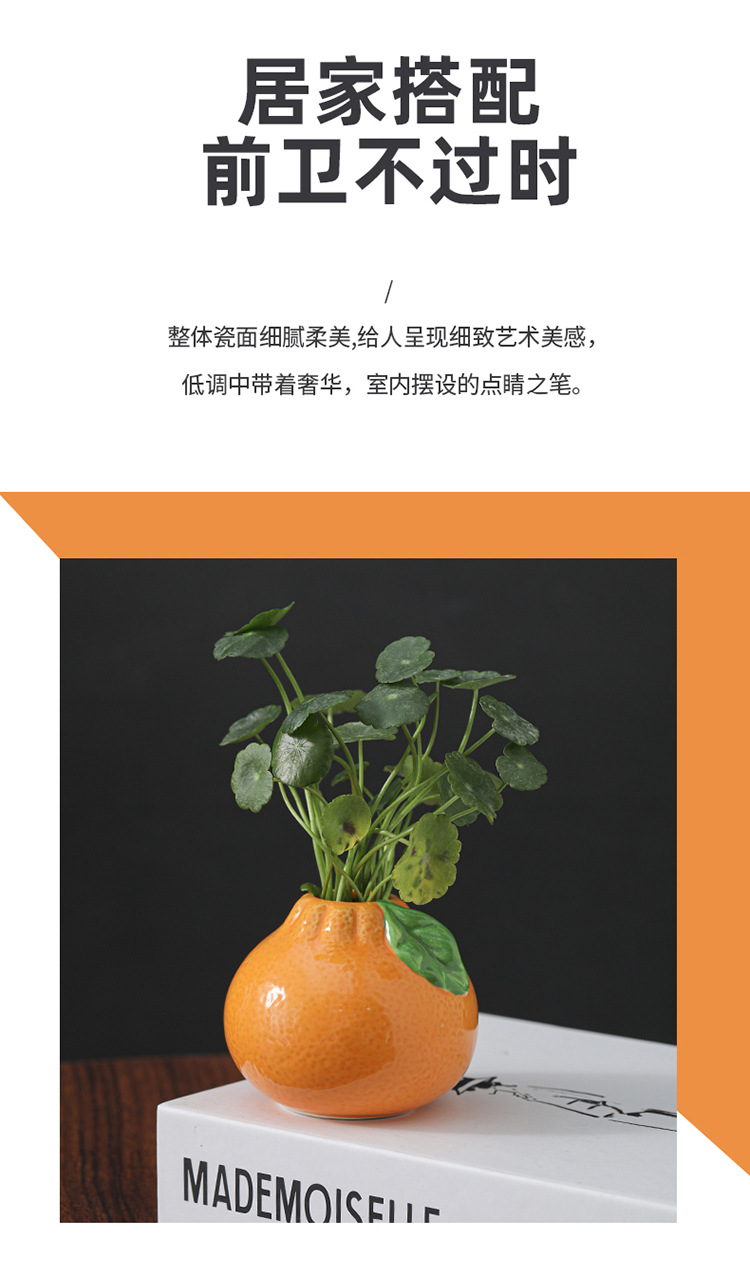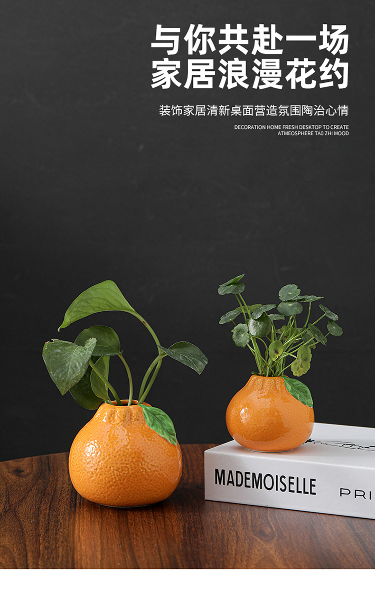 창조적 인 인터넷 축하 오렌지 세라믹 꽃병 구리 돈 잔디 그린 로즈 수경 꽃병 홈 오피스 데스크탑 장식 장식품스토어 가기