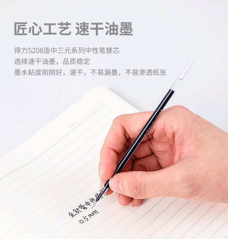 델리 S208 시험 속건성 젤펜 리필 0.5mm 풀 니들 튜브 풀 니들 튜브 학생 브러쉬 펜 시험 펜