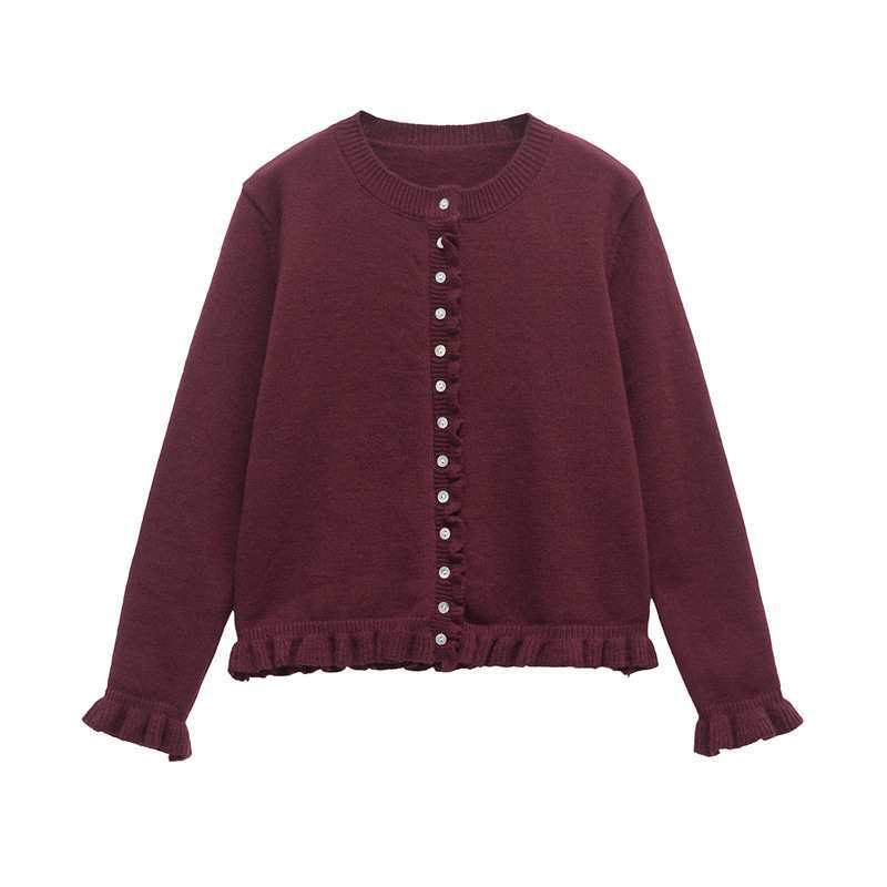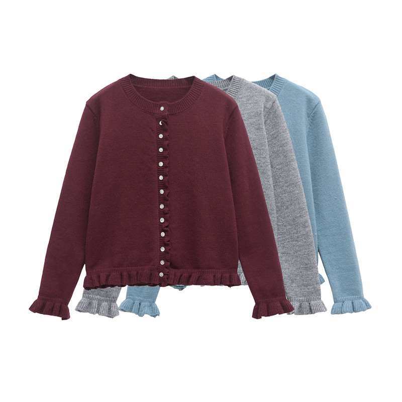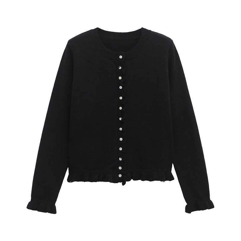 겨울 패션 대외 무역 새로운 싱글 브레스트 라운드 넥 니트 코트 긴 소매 유럽과 미국 스타일의 여성 의류