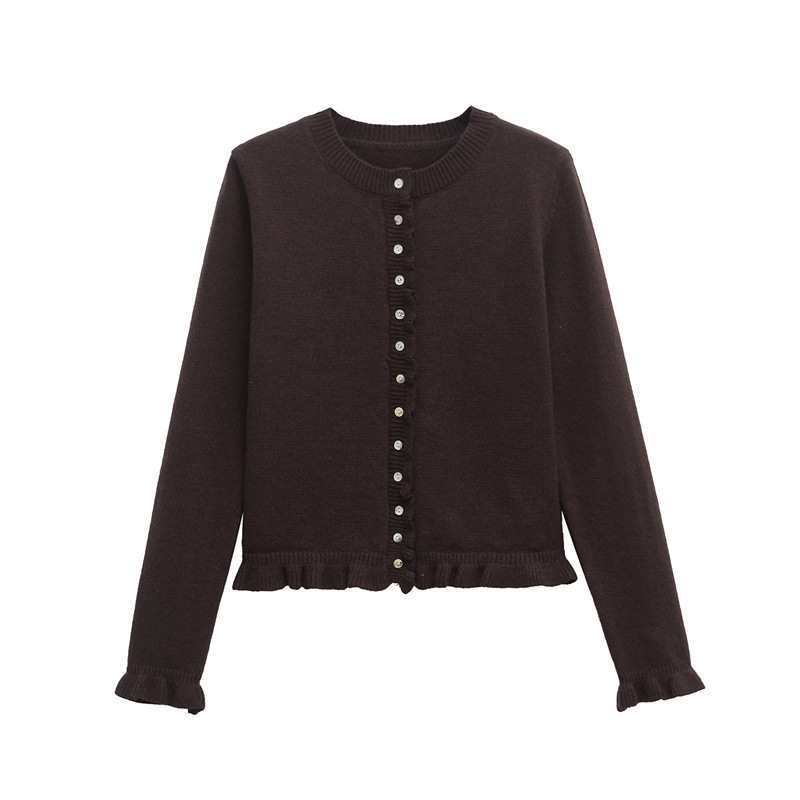 겨울 패션 대외 무역 새로운 싱글 브레스트 라운드 넥 니트 코트 긴 소매 유럽과 미국 스타일의 여성 의류스토어 가기