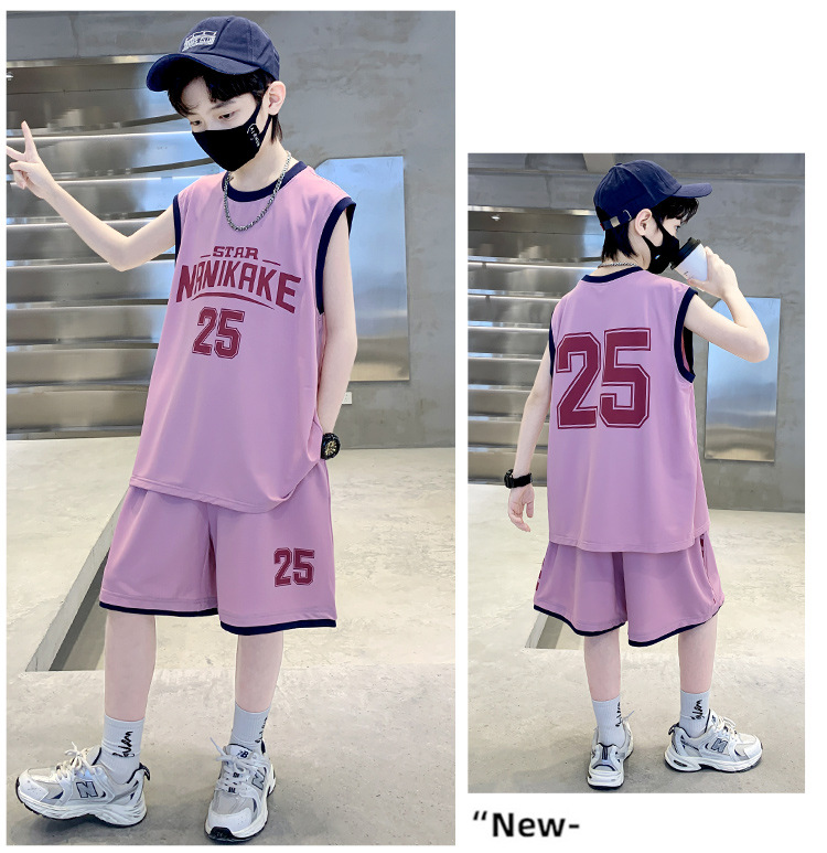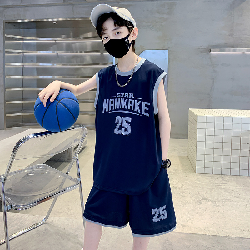 아동복 소년 여름 민소매 조끼 세트 2025 새로운 여름 큰 아이들 여름 스포츠 빠른 건조 농구 세트