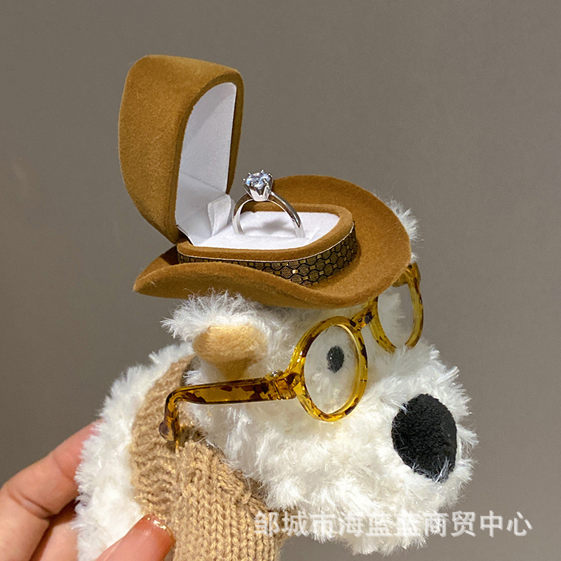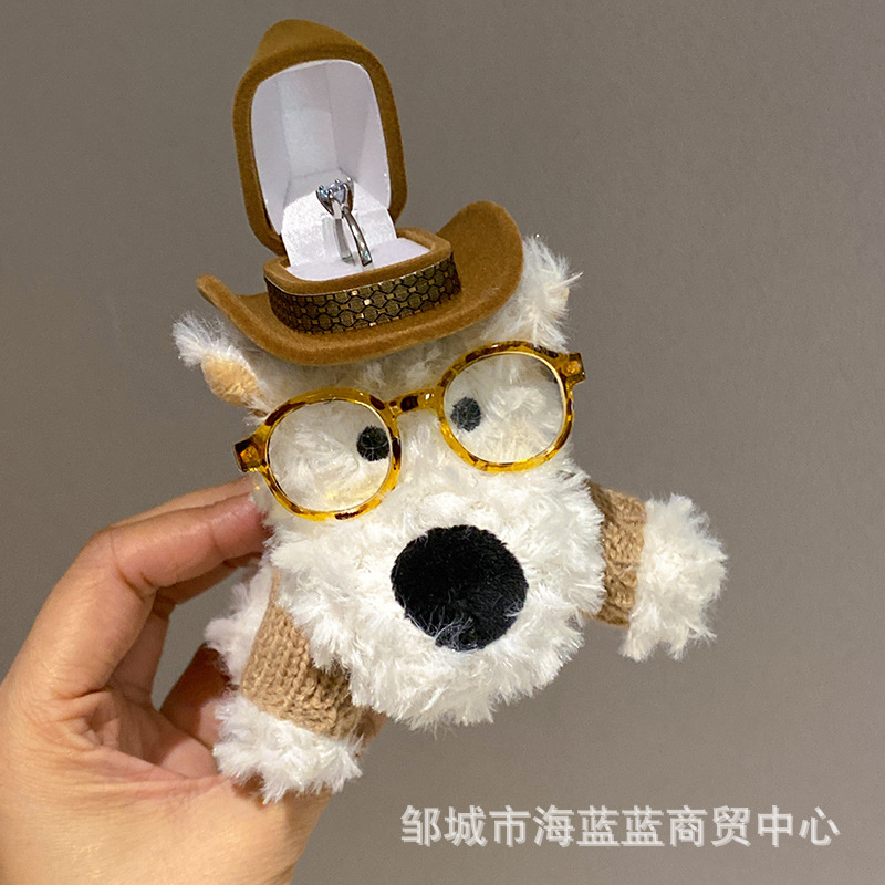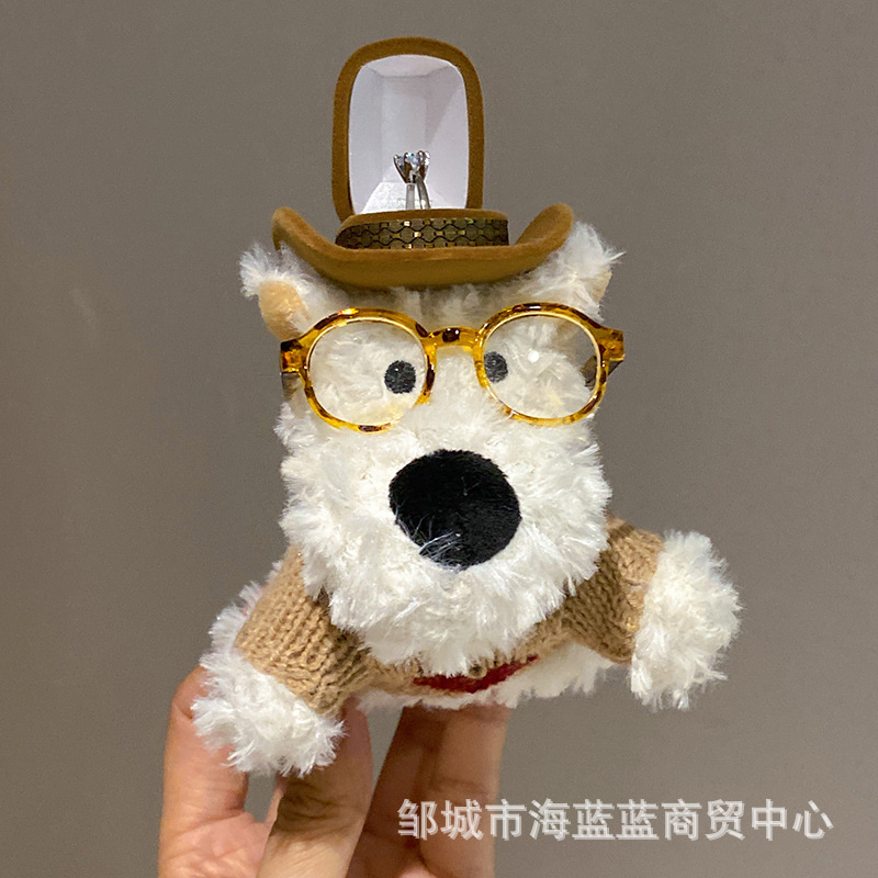 창조적 인 예술 스타일 웨스트 하이랜드 강아지 인형 반지 상자 귀여운 만화 인형 장식품 보관 보석 상자스토어 가기