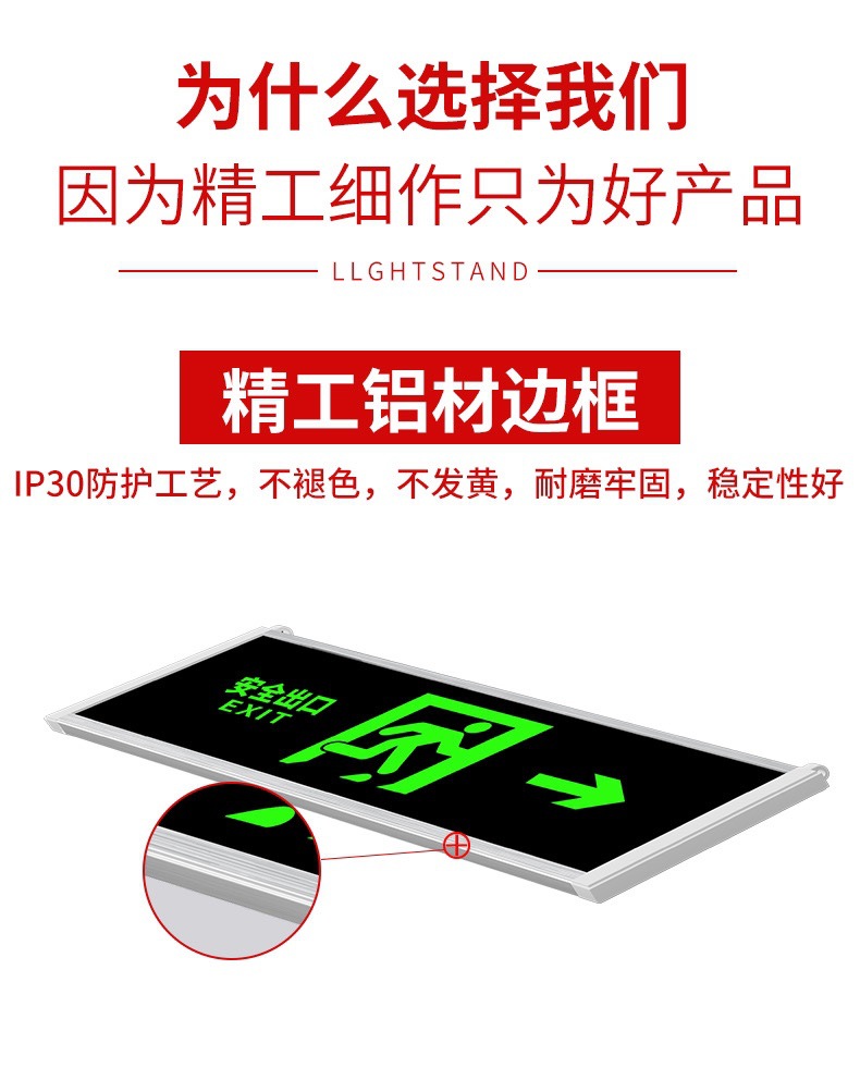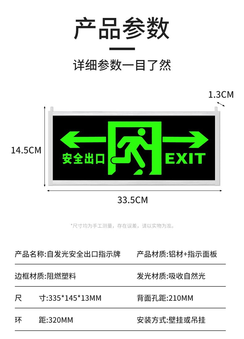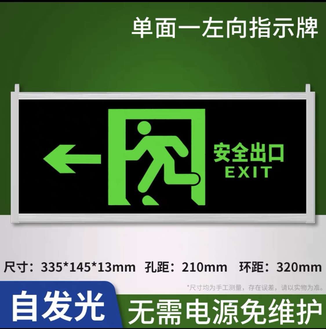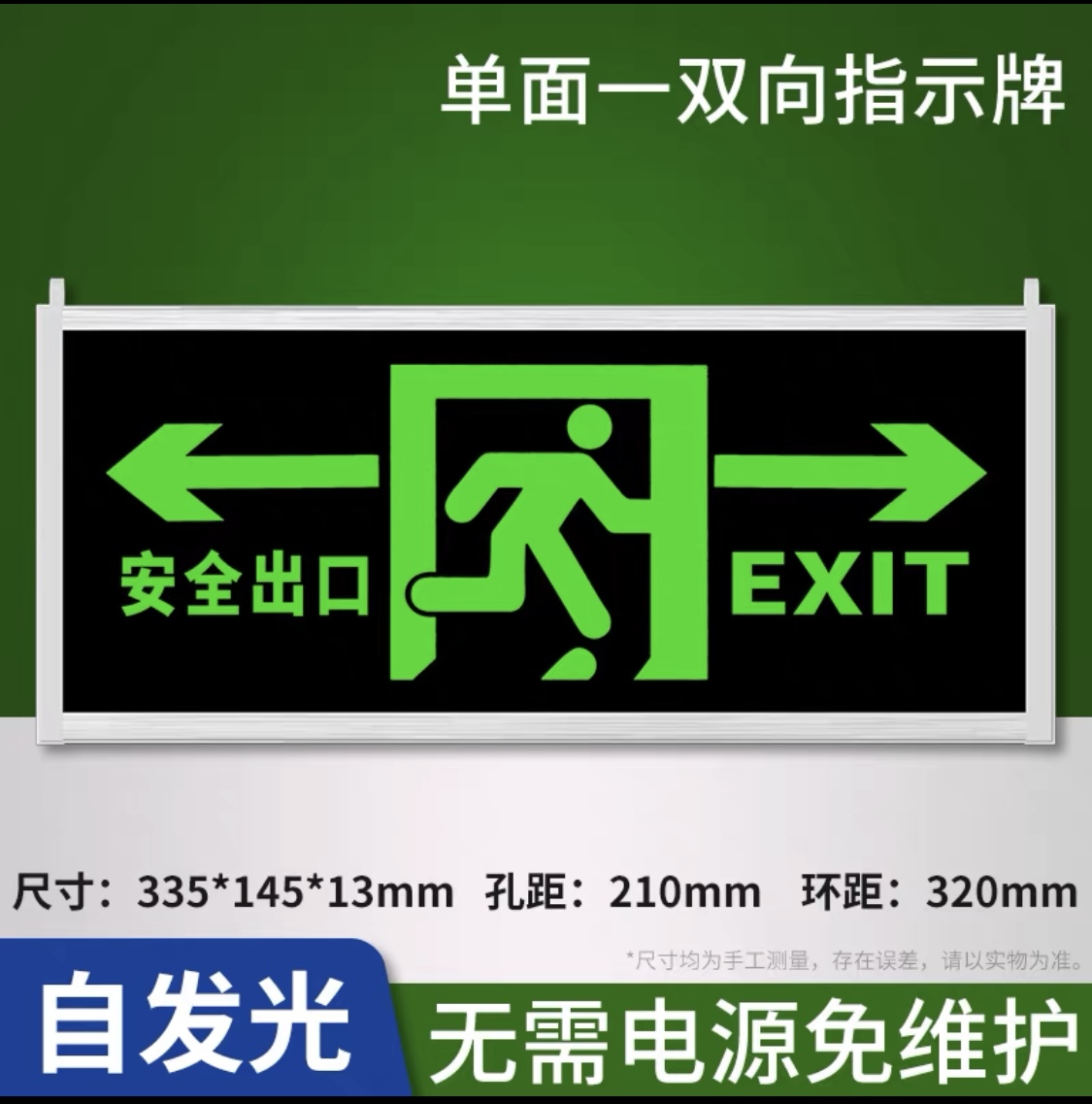 전원이 필요 없는 출구 표시판, 자체 발광 비상 대피 발광 탈출 표시판, 펀칭 없음