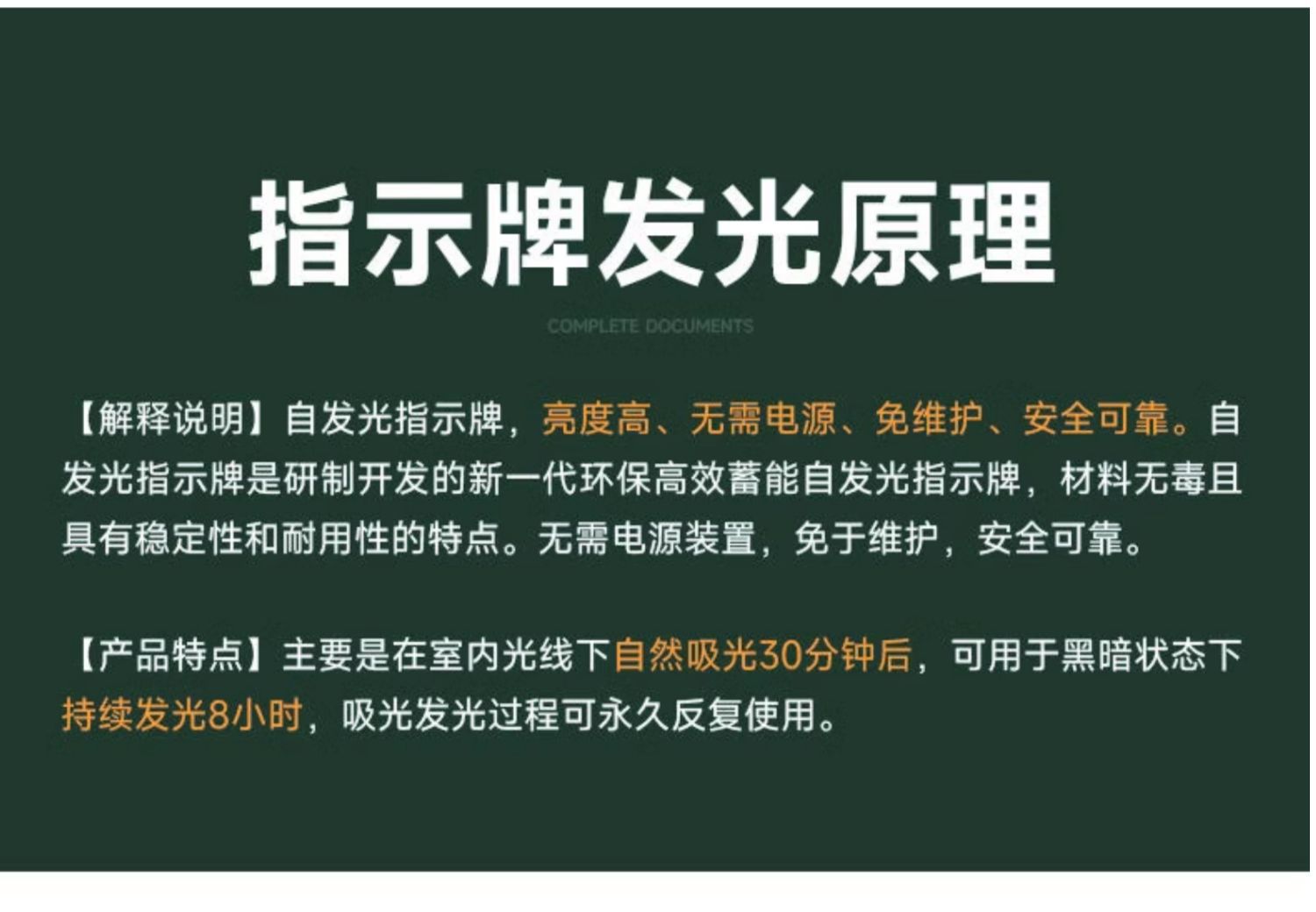 전원이 필요 없는 출구 표시판, 자체 발광 비상 대피 발광 탈출 표시판, 펀칭 없음스토어 가기
