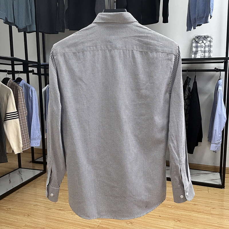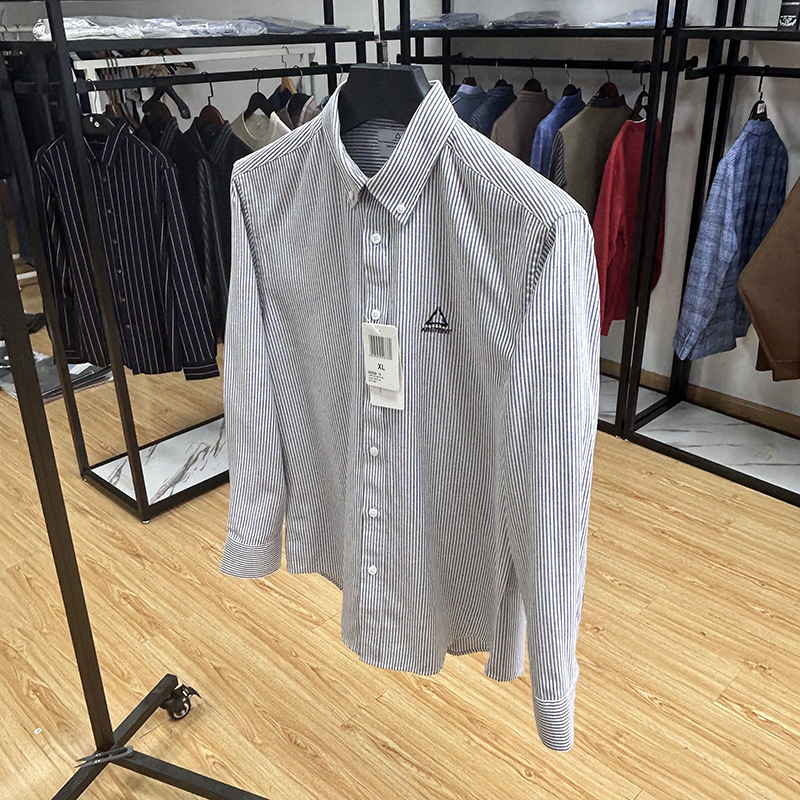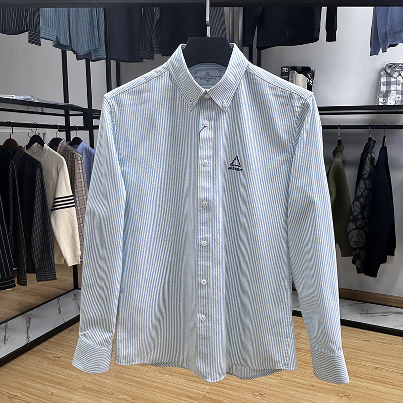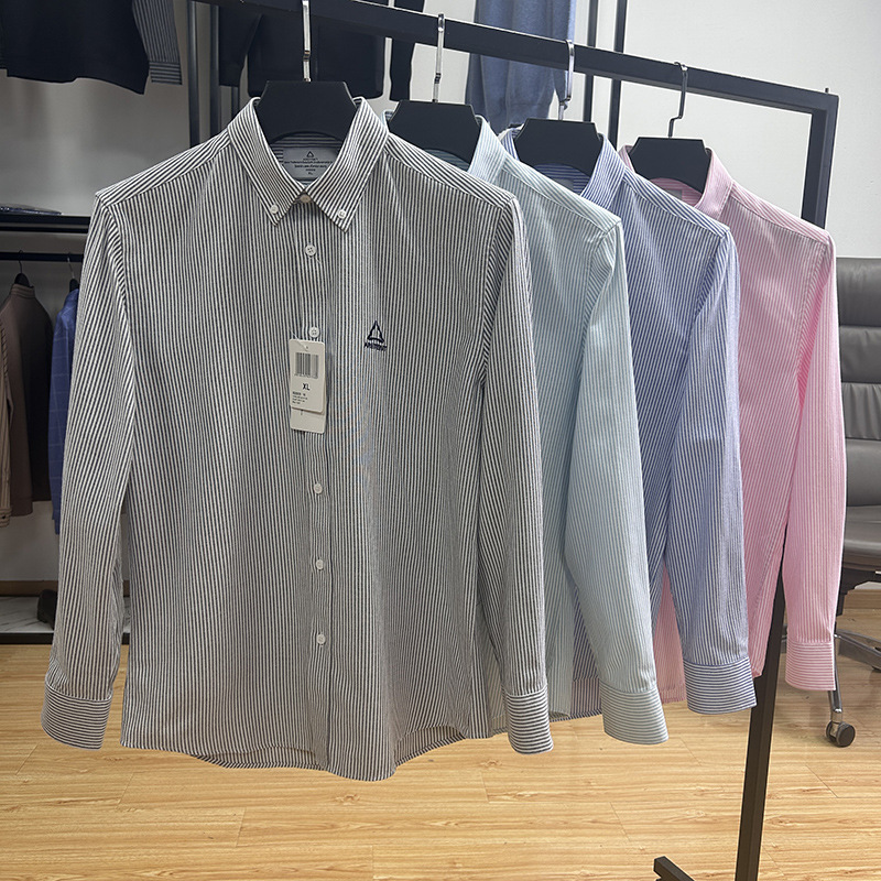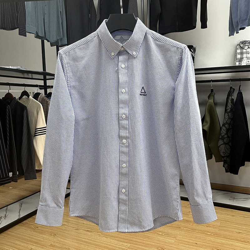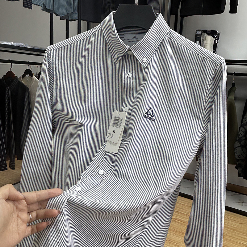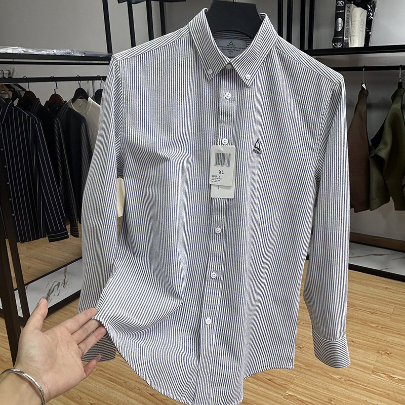 대외 무역 컷 라벨 남성 의류-편안한 소재 피부 친화적 인 클래식 스트라이프 버튼 칼라 남성 긴팔 셔츠 스프링 슬림 셔츠스토어 가기