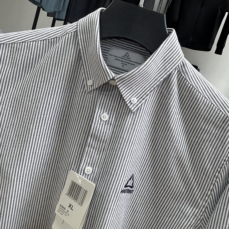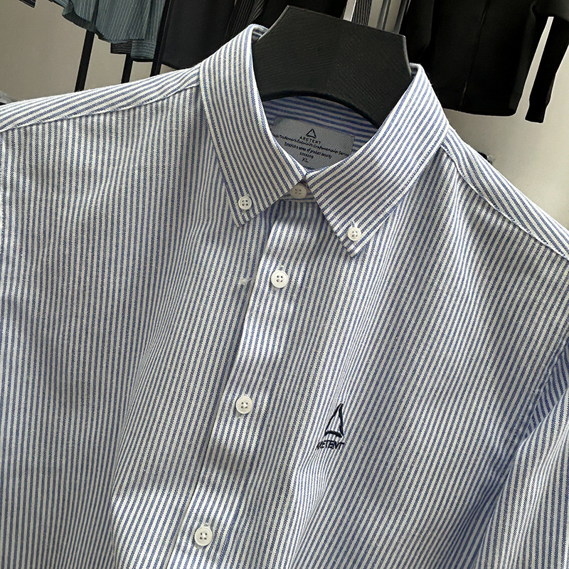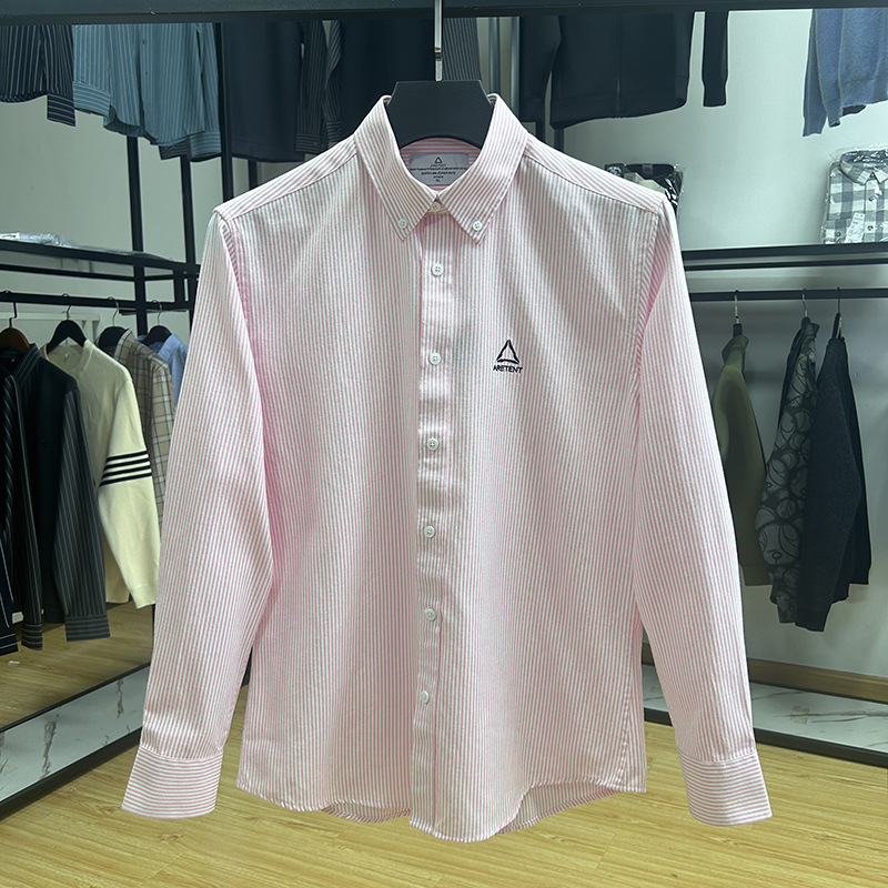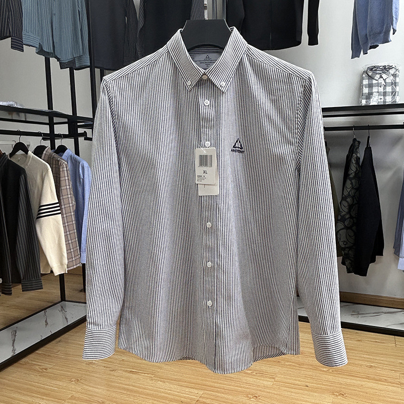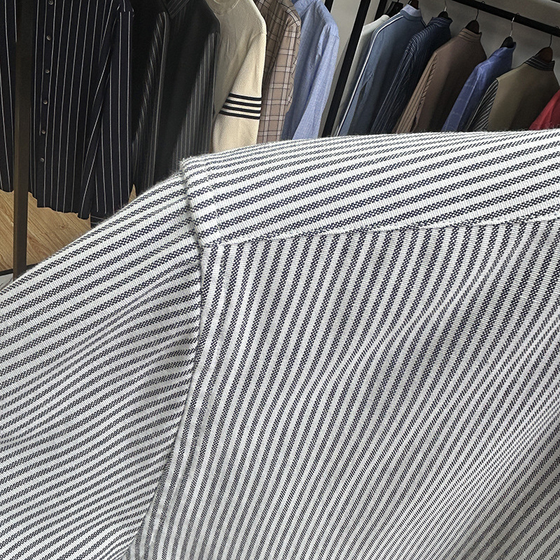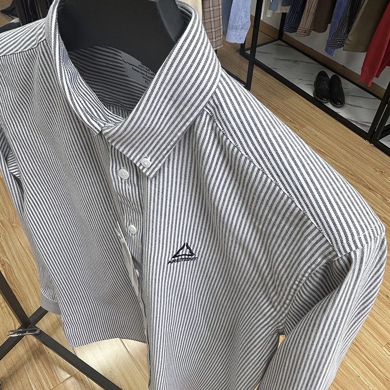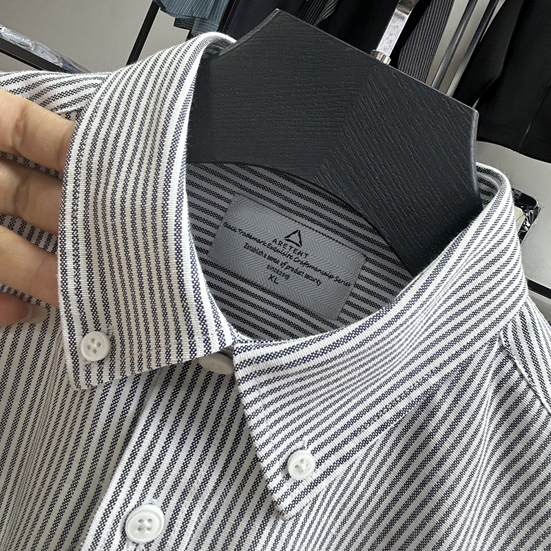 대외 무역 컷 라벨 남성 의류-편안한 소재 피부 친화적 인 클래식 스트라이프 버튼 칼라 남성 긴팔 셔츠 스프링 슬림 셔츠스토어 가기