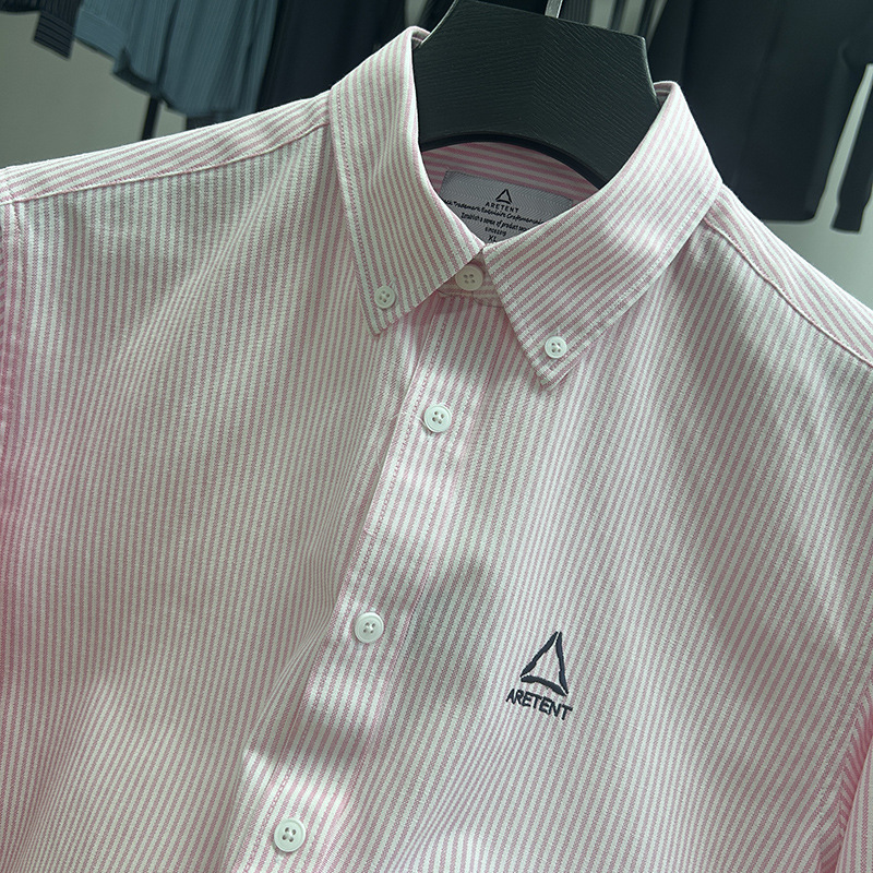 대외 무역 컷 라벨 남성 의류-편안한 소재 피부 친화적 인 클래식 스트라이프 버튼 칼라 남성 긴팔 셔츠 스프링 슬림 셔츠