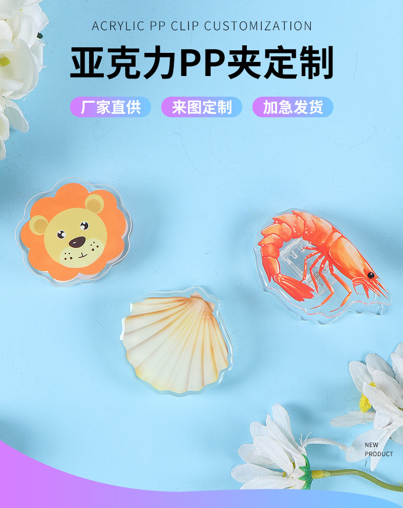 아크릴 PP 클립 인쇄 로고 어린이 만화 책가방 장식 클립 학생 양면 귀여운 스토리지 노트 클립 사용자 정의스토어 가기